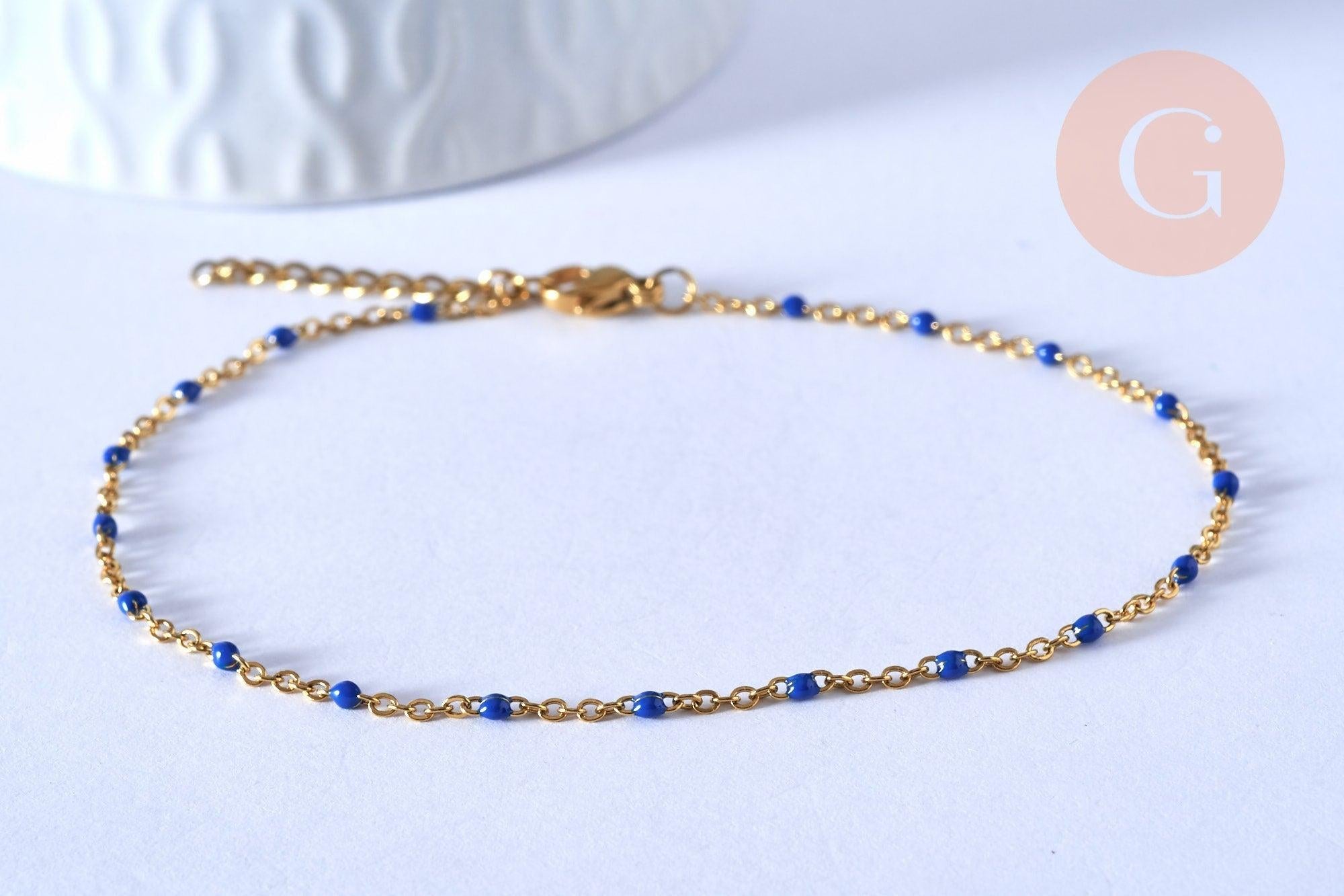 chaine de cheville acier doré 14k résine bleu foncé chaine dorée 1.5-2mm/23cm, x1 (G5405)