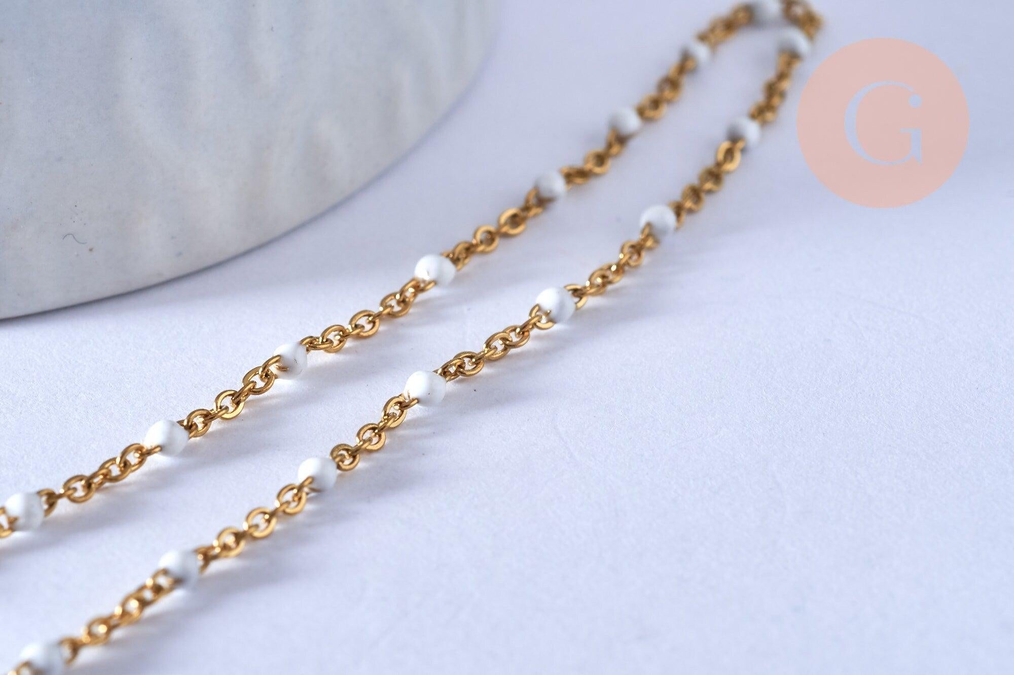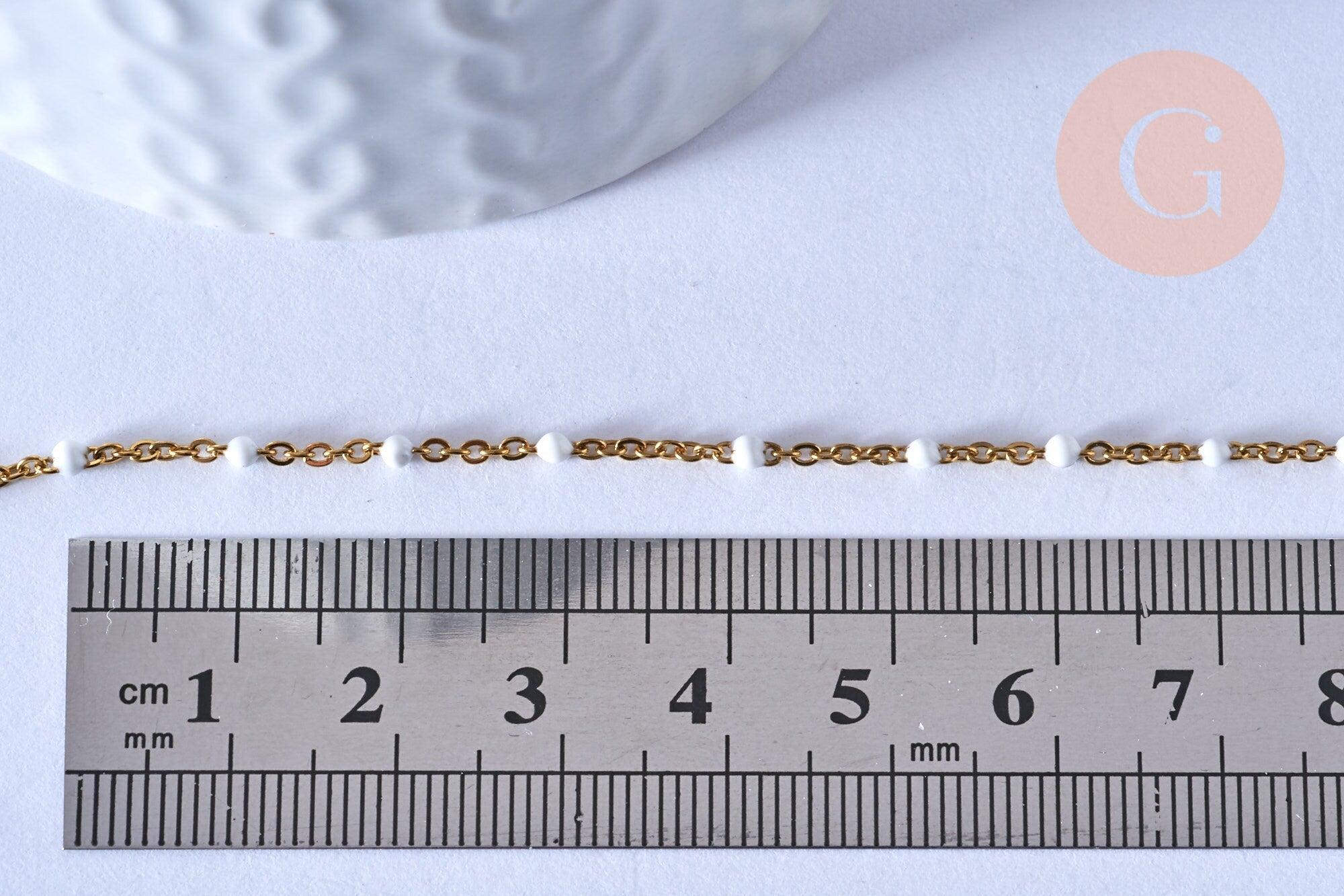 chaine de cheville acier doré 14k résine blanche chaine dorée 1.5-2mm,23cm, x1 (G3659)