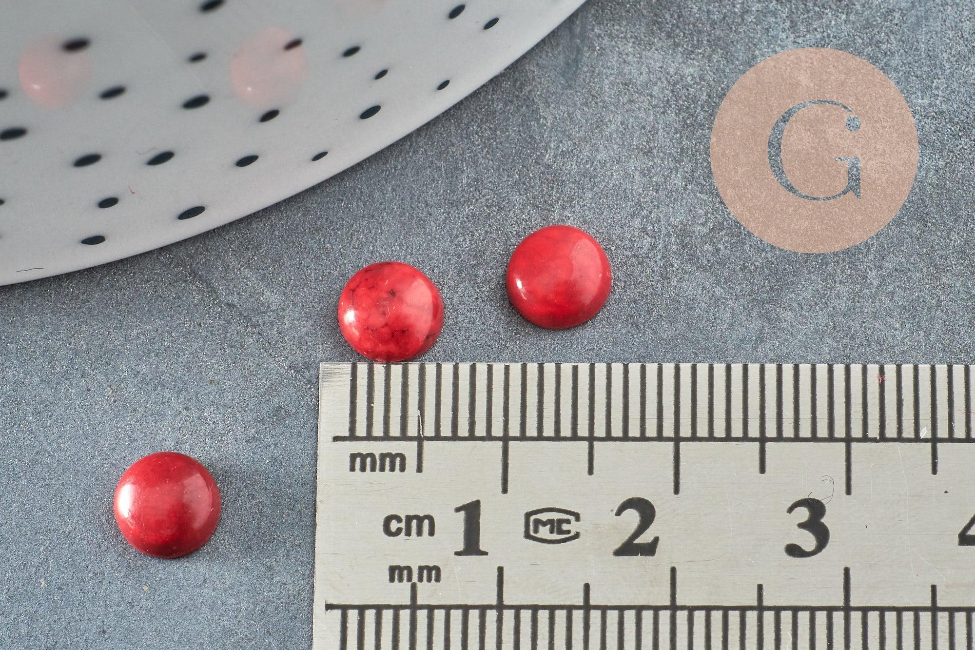 Cabochon howlite rouge, fournitures créatives, cabochon rond, howlitenaturelle, cabochon howlite,pierre naturelle,6mm
