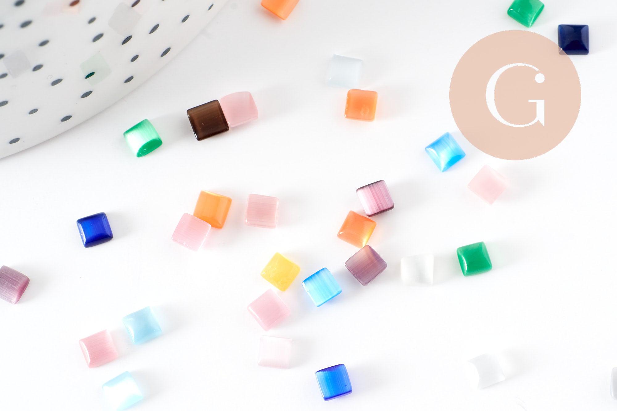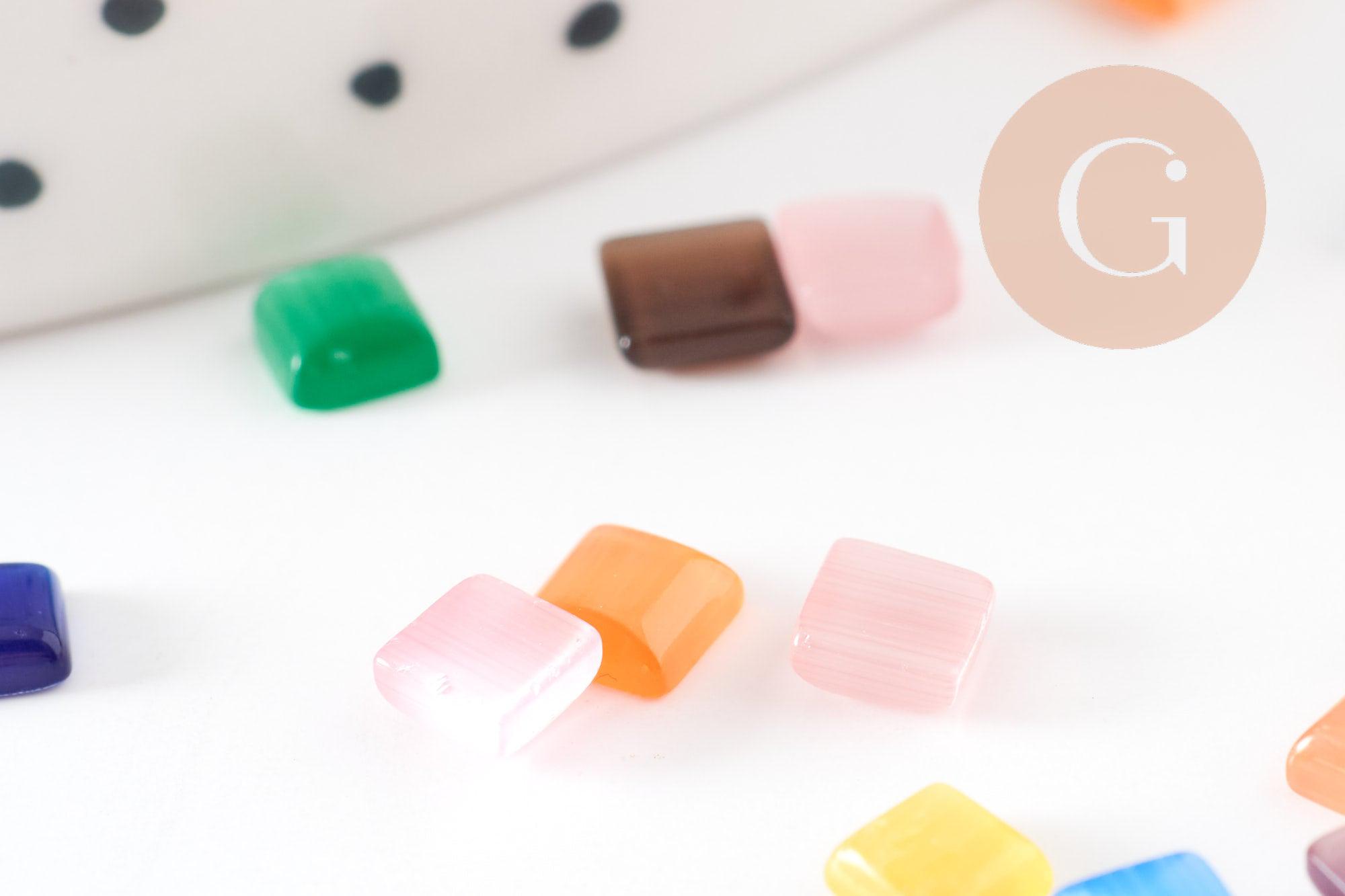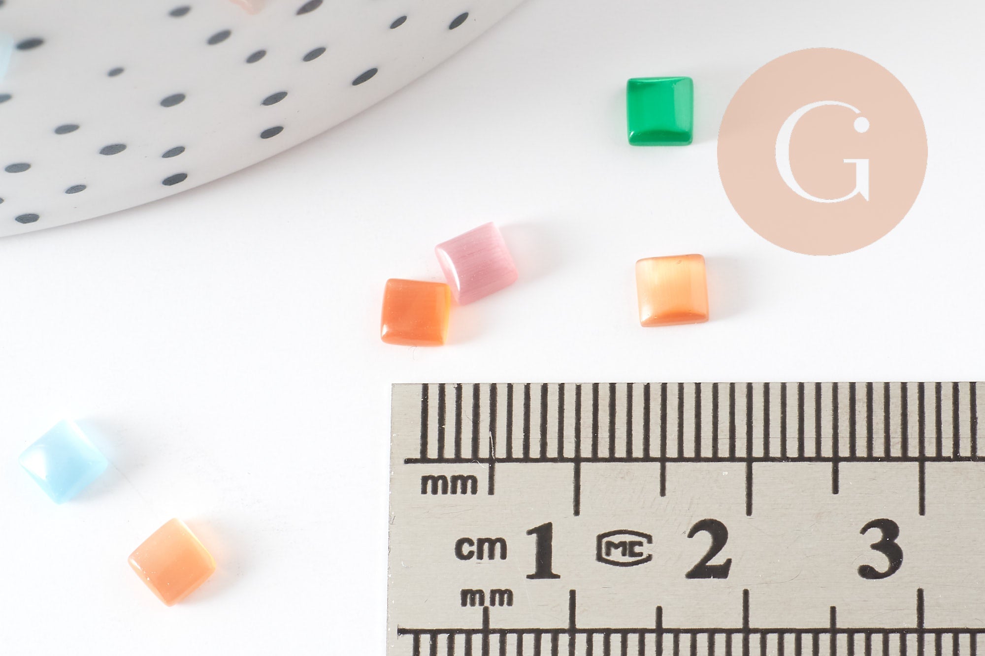 Craquez pour ces cabochons carrés multicolores en verre œil de chat de 4mm de large.