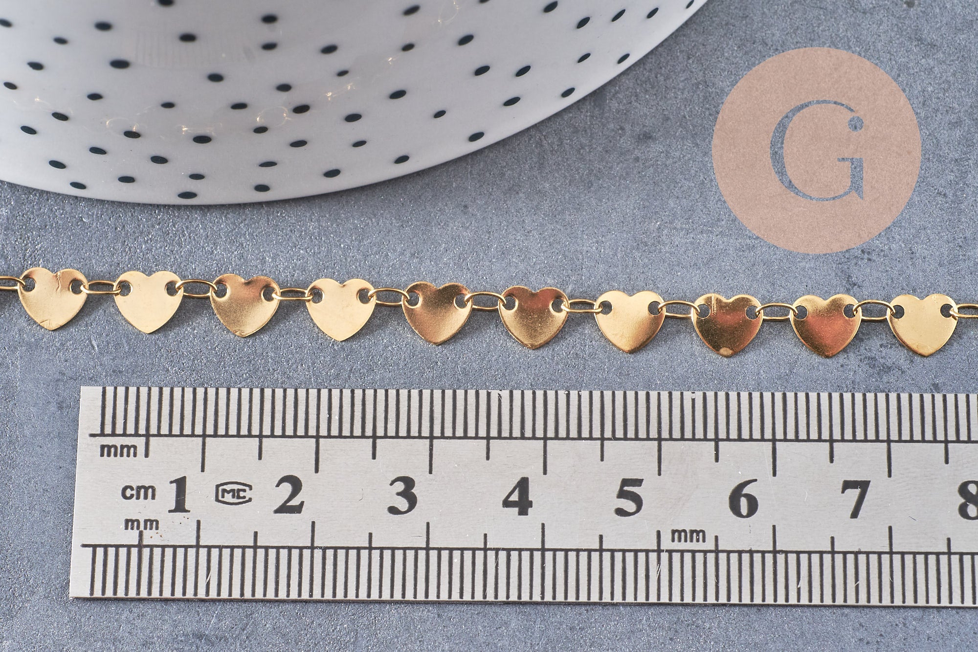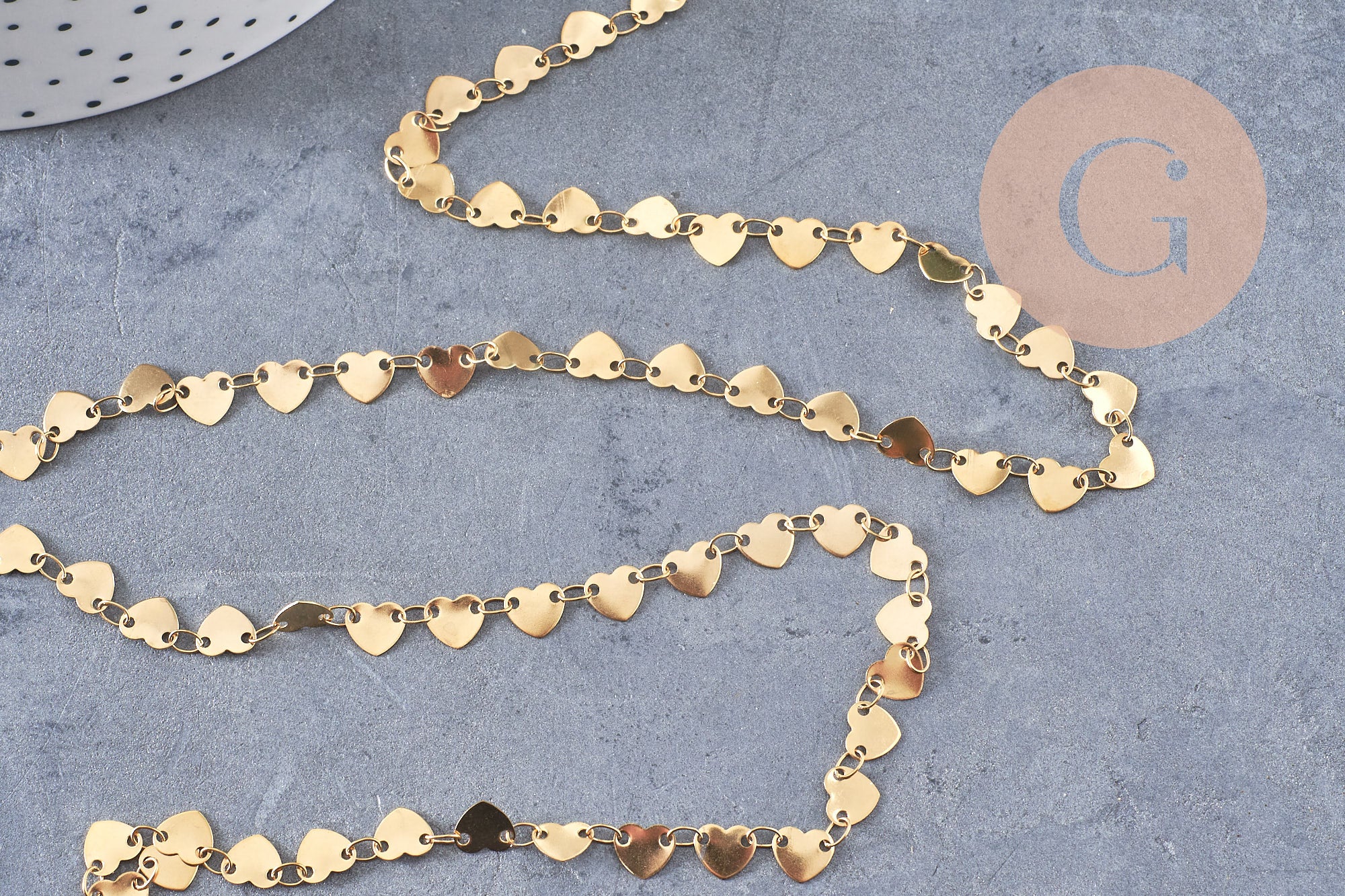 Chaine complète acier dorée 14k cœur,chaine fantaisie collier,sans nickel,chaine fantaisie, acier doré,chaine complète,6.5mm,1 mètre