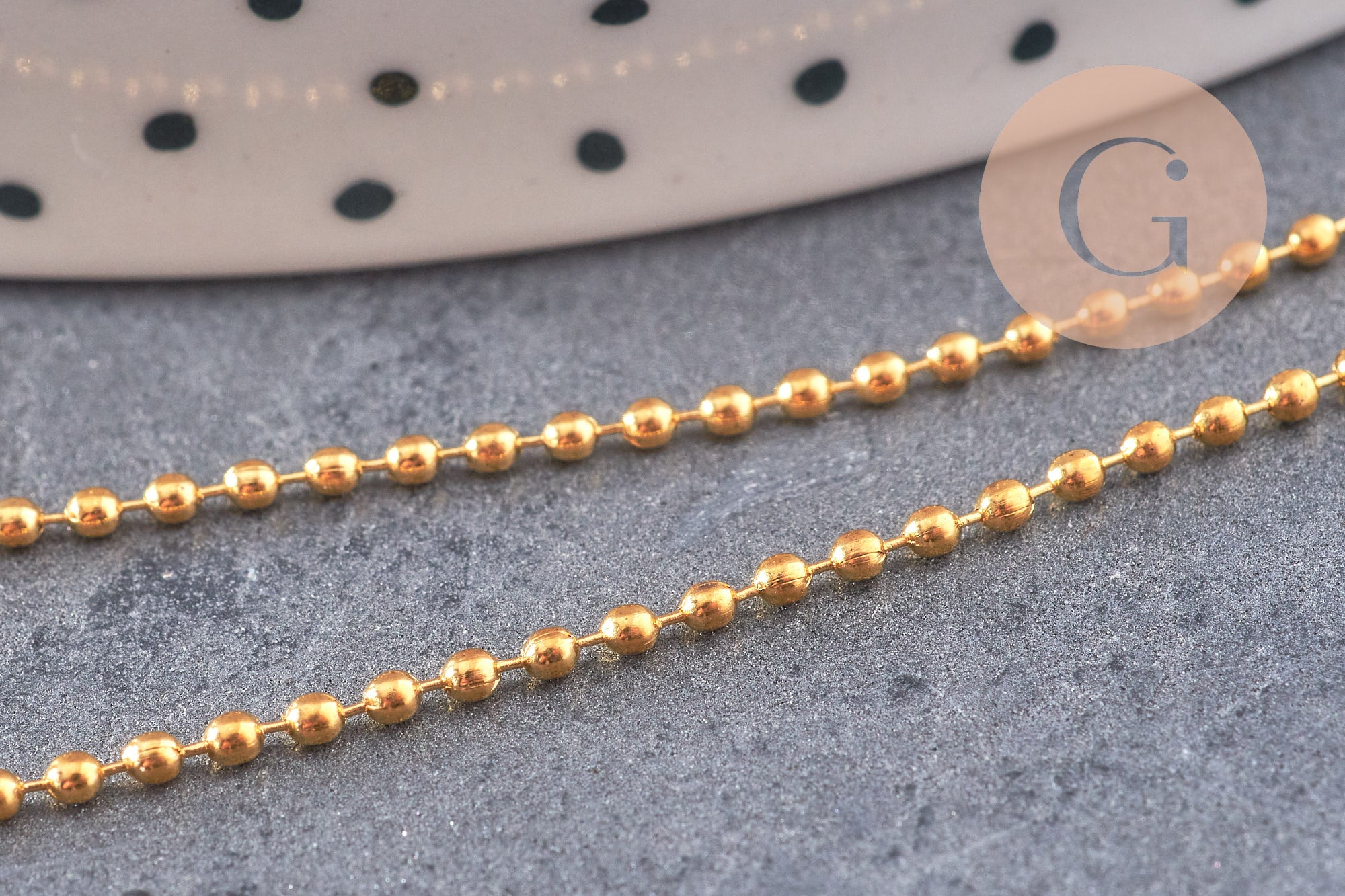 Une chaine boule en laiton couleur dorée : pas de limite à votre créativité : réalisez vos sautoirs, bracelets, colliers, boucles et autres bijoux.