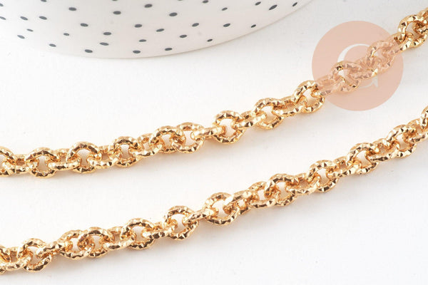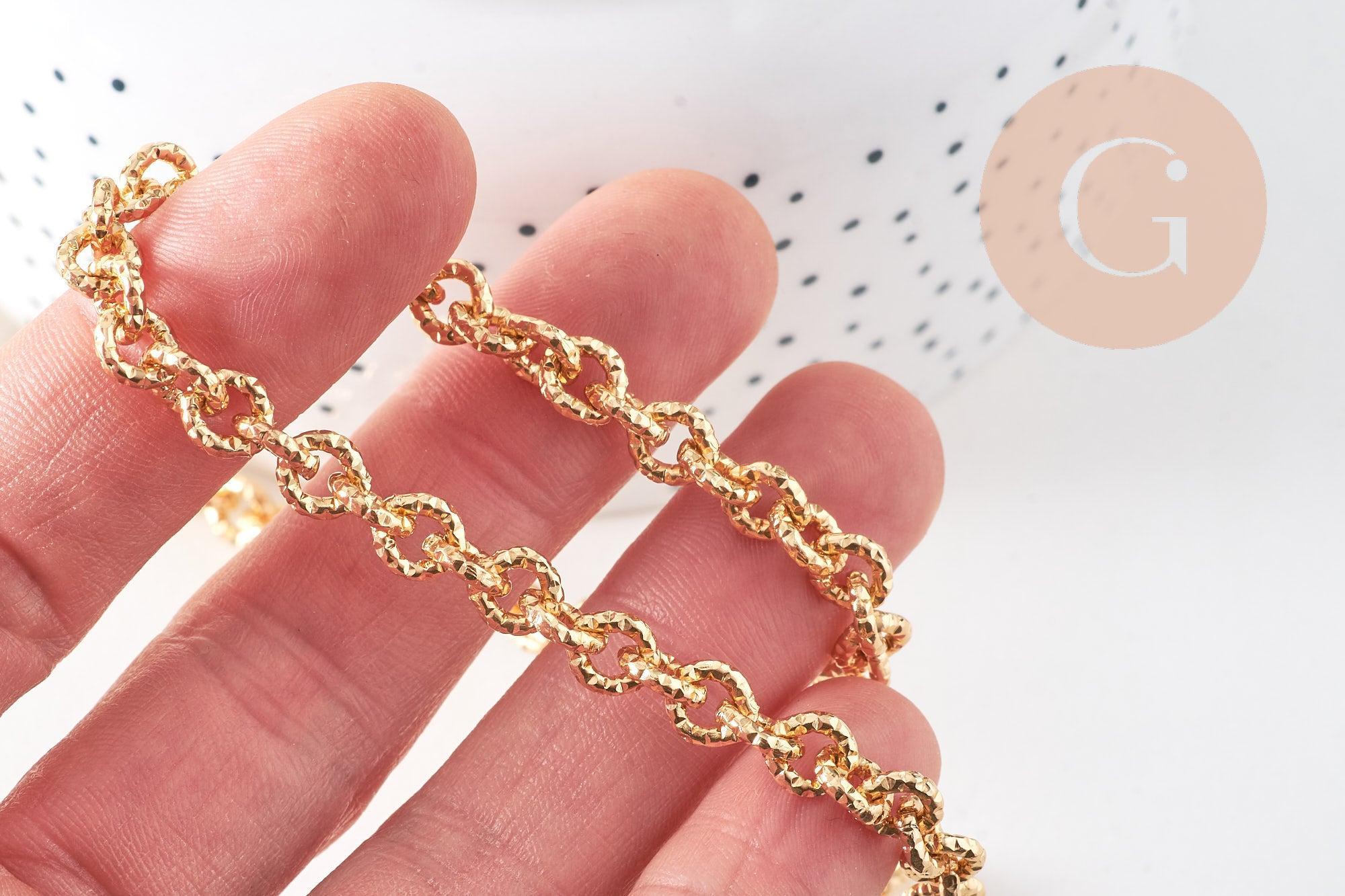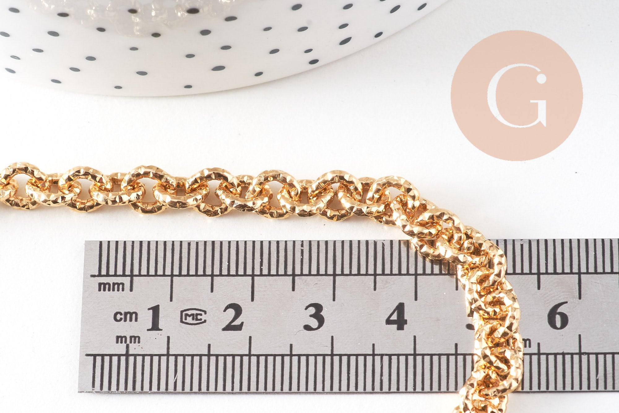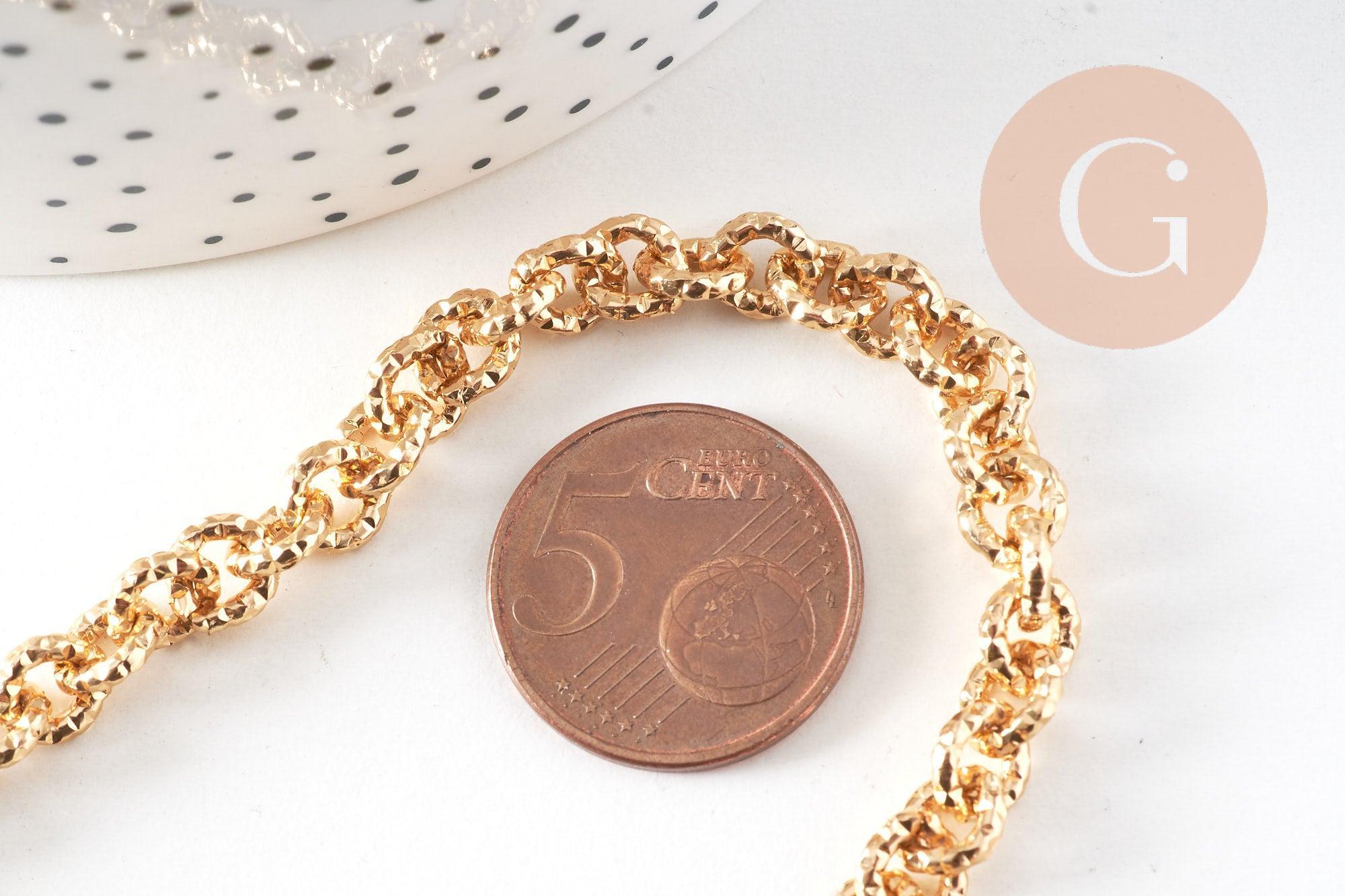 Chaine doré maille forçat texturée aluminium doré pâle,chaine collier,création bijoux,chaine martelée,7mm,vendue au mètre