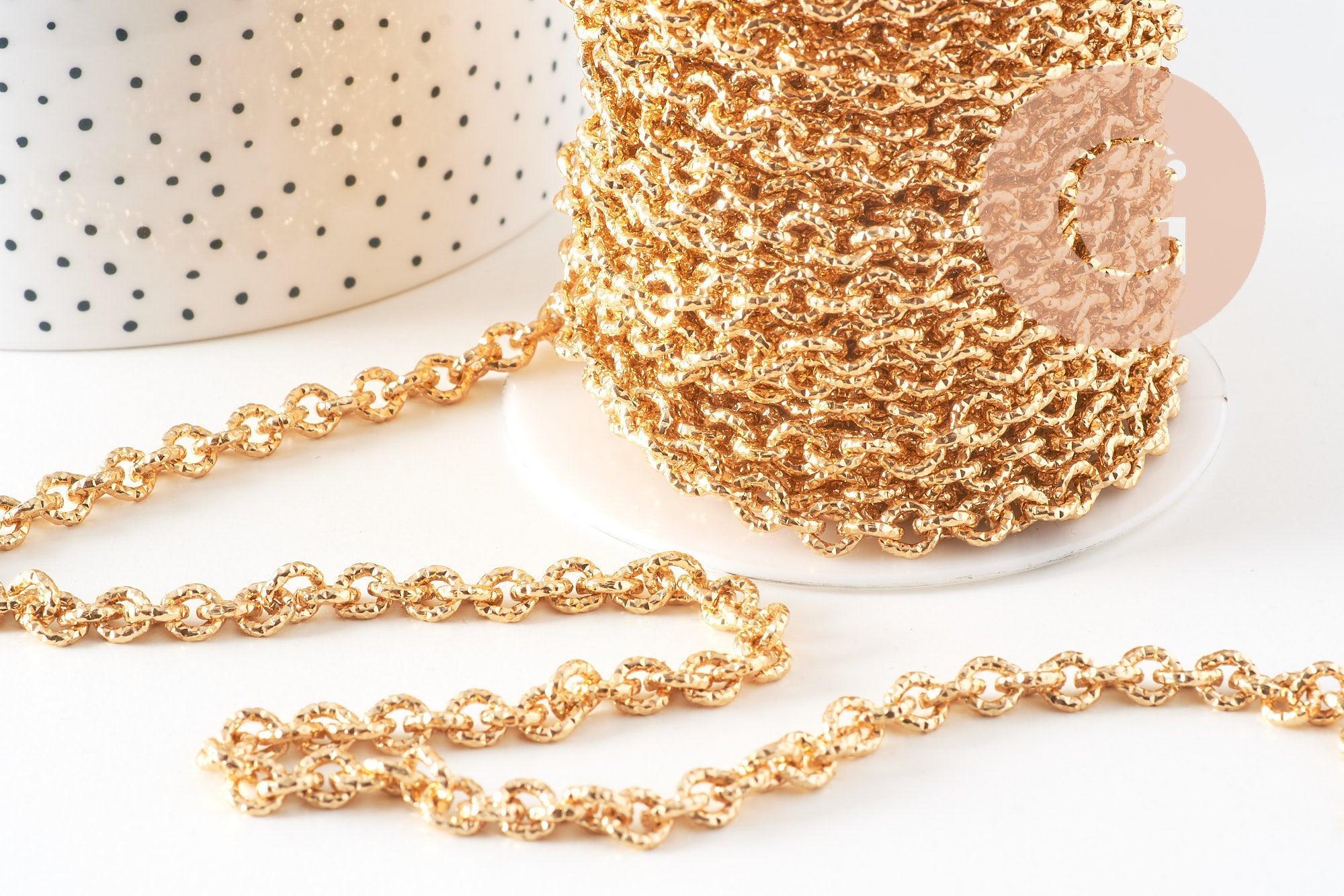 Pour exécuter rapidement vos bijoux, Gingerily vous propose cette chaine à maille forçat texturée dorée en aluminium doré.