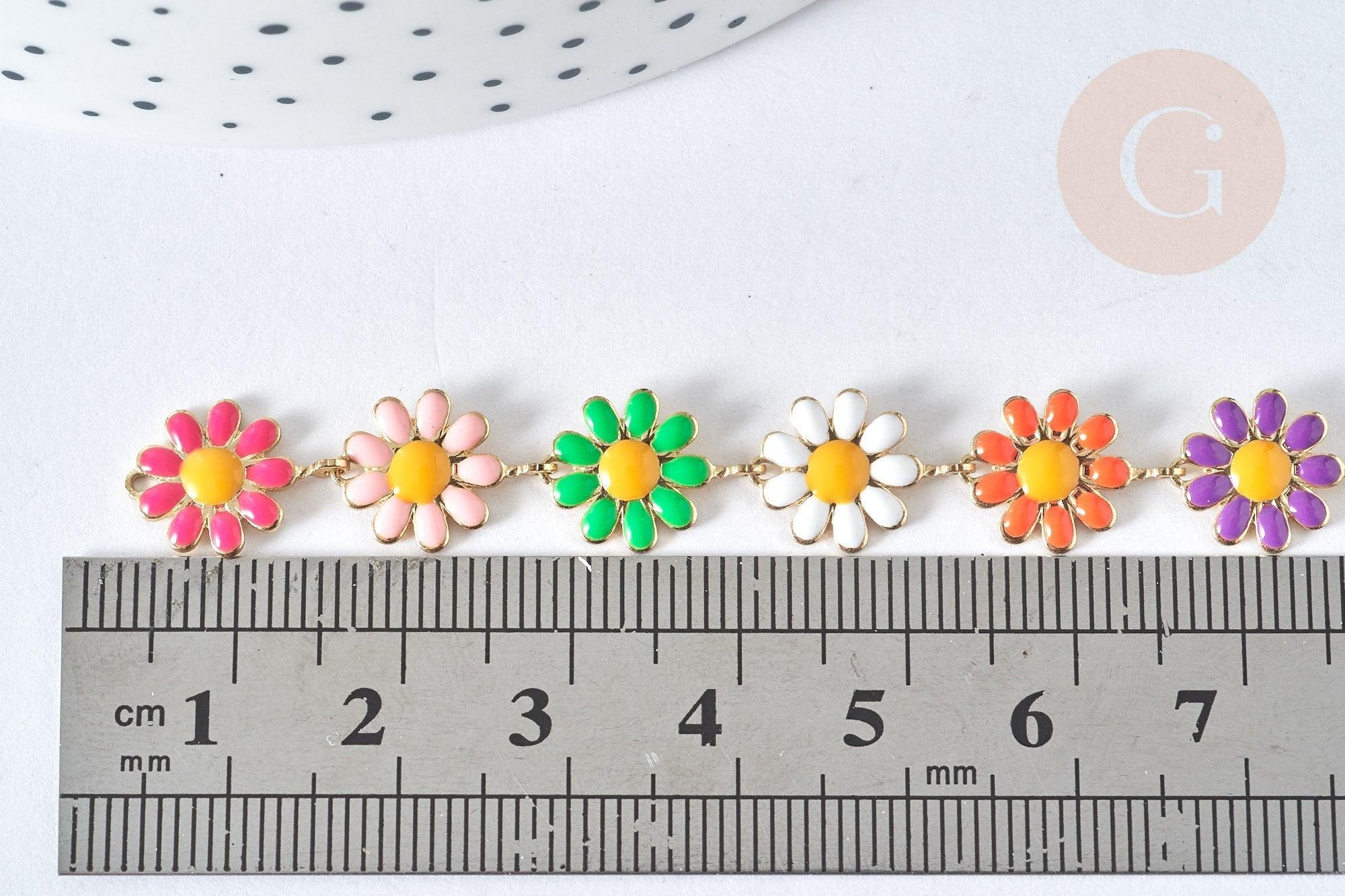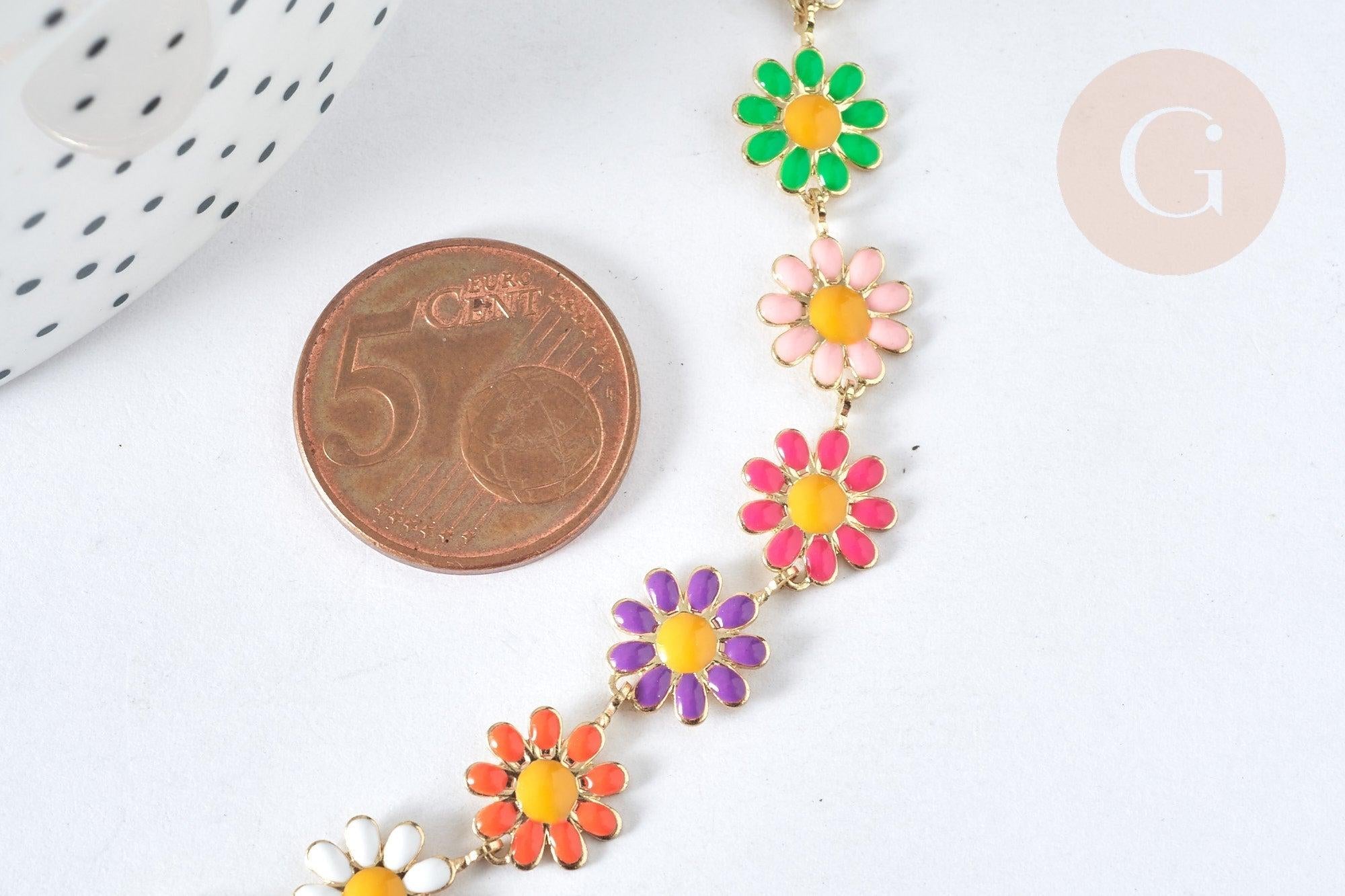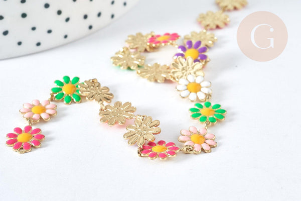 Pour vos nombreuses créations de bijoux DIY, adoptez cette chaîne fantaisie de fleurs marguerites en laiton doré avec une finition d'un émail coloré !