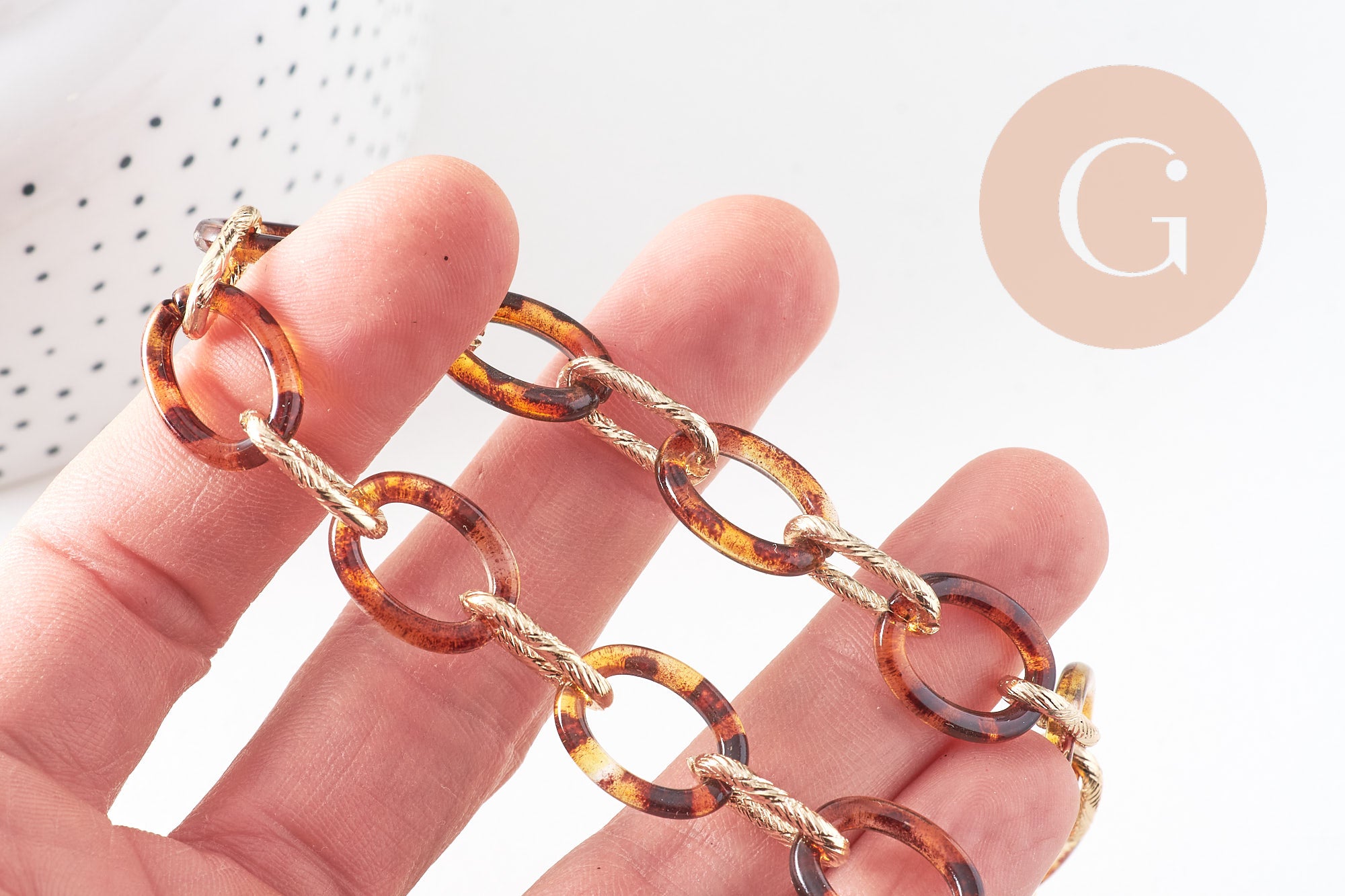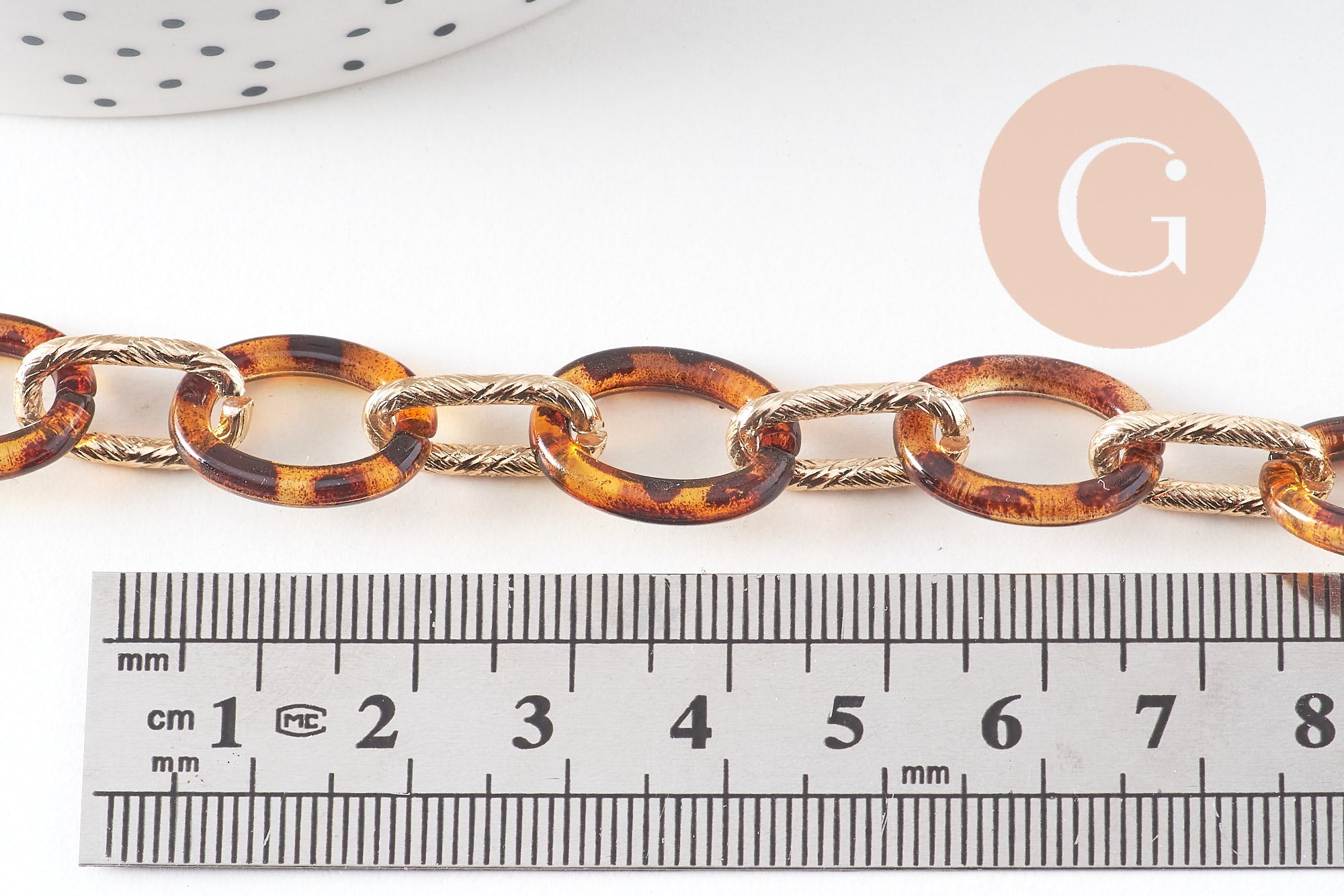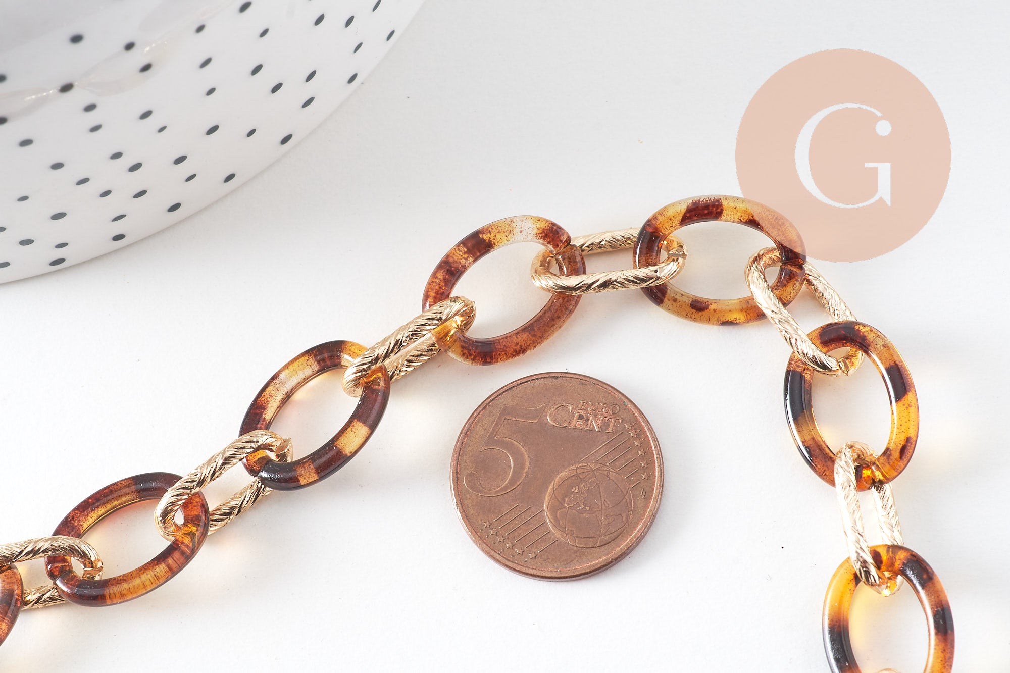 Grosse Chaine ronde écaille acrylique et aluminium doré texturé,perle acétate, création bijoux,chaine plastique,17.5mm, le mètre Une grosse chaîne en plastique acrylique au motif écaille et lien en aluminium doré texturé pour réaliser des bijoux modernes et décalées.Elles seront livrées par...