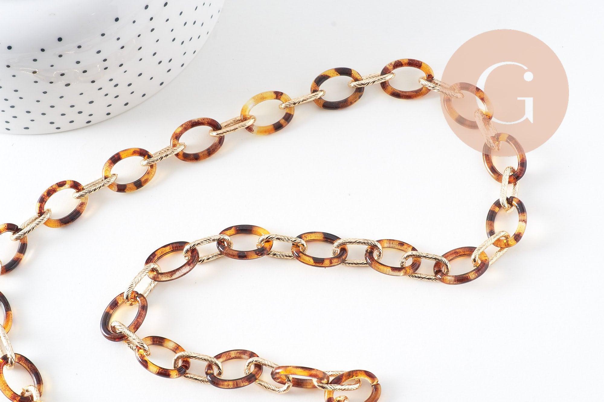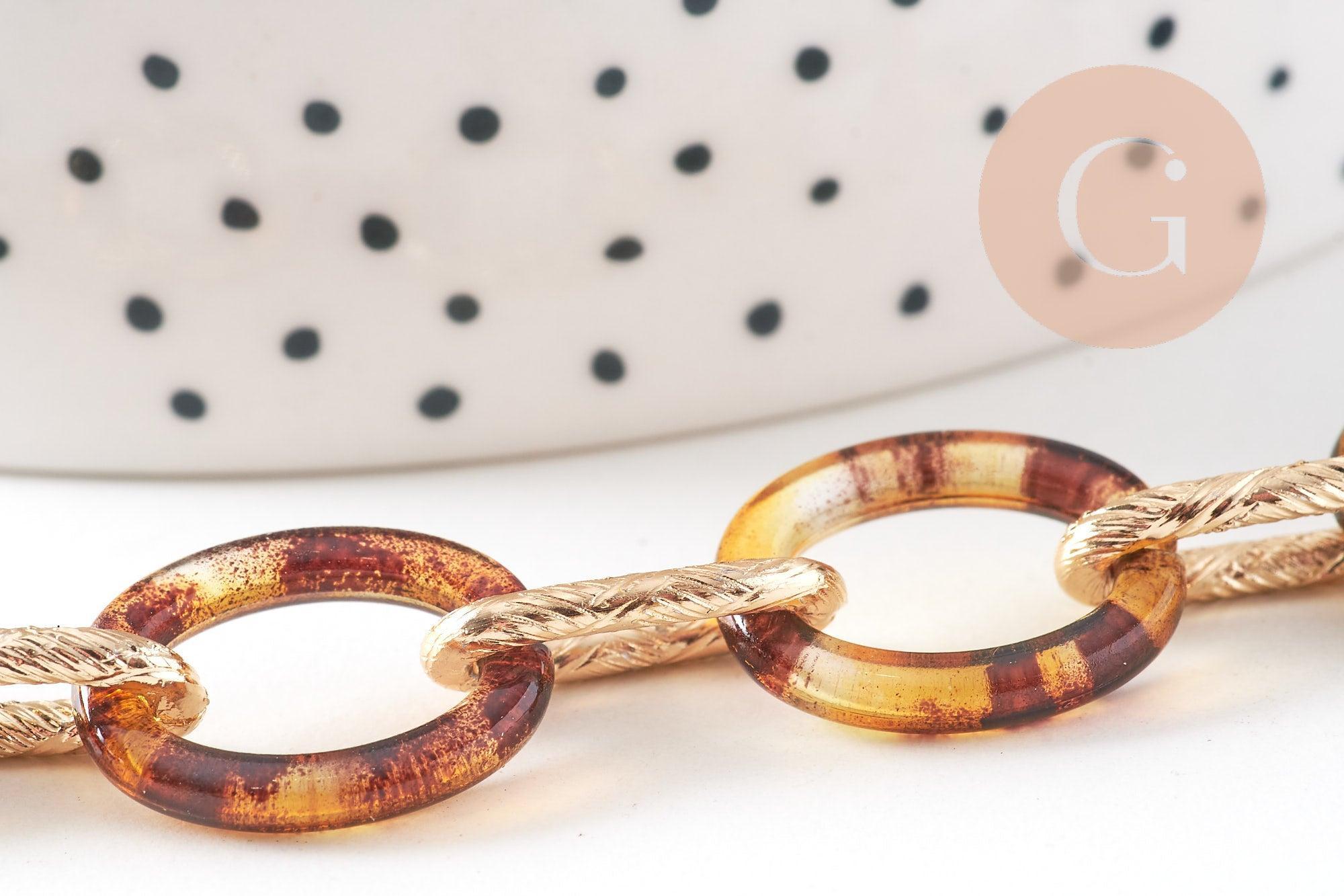Grosse Chaine ronde écaille acrylique et aluminium doré texturé,perle acétate,17.5mm, x1 mètre, x1 mètre (G5066)