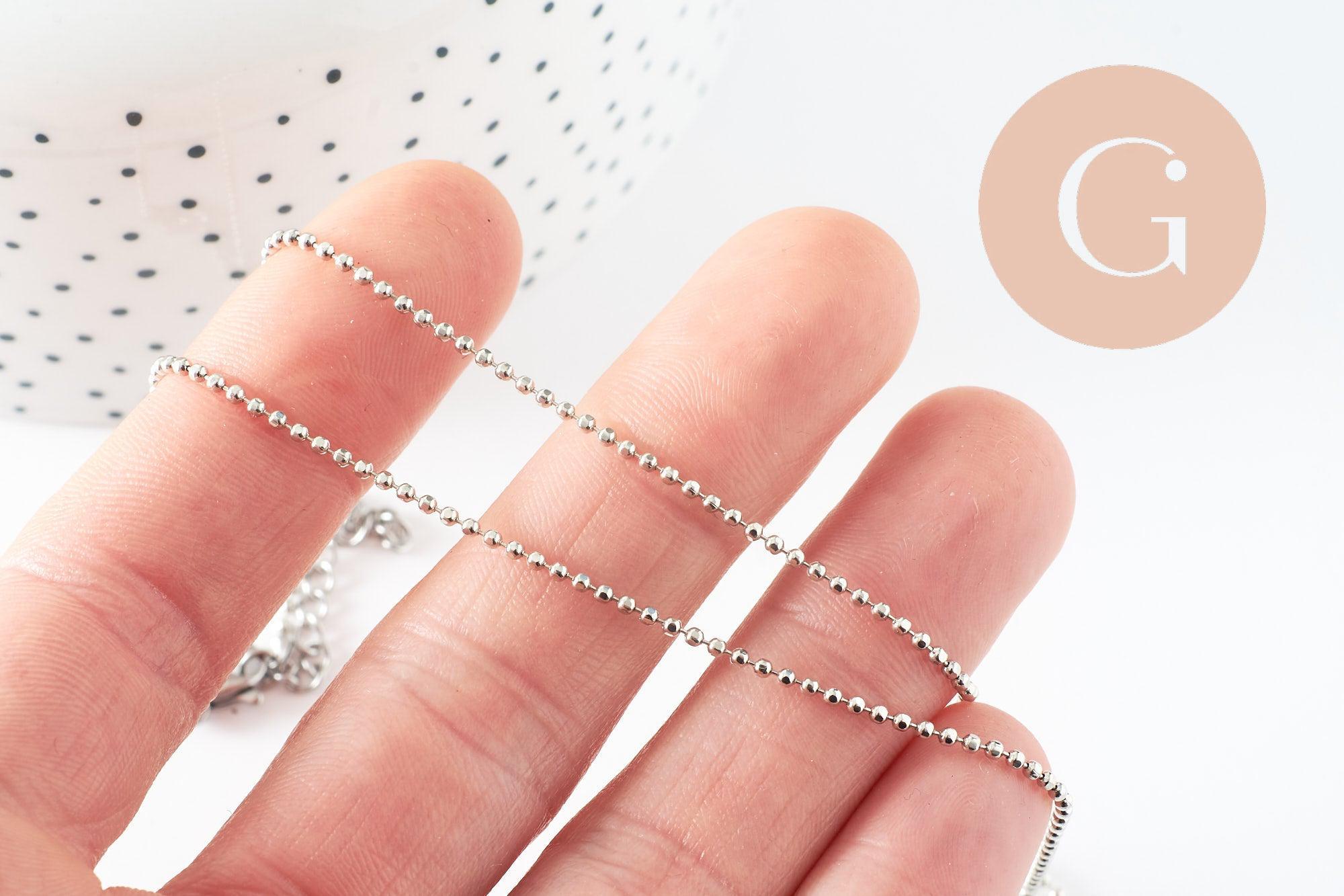 Chaine complète boule acier 304 inoxydable platine 1.5mm/45.5cm,chaine fine argentée avec fermoir création collier x1 (G9778)