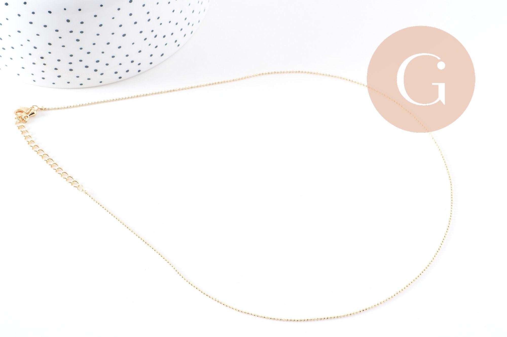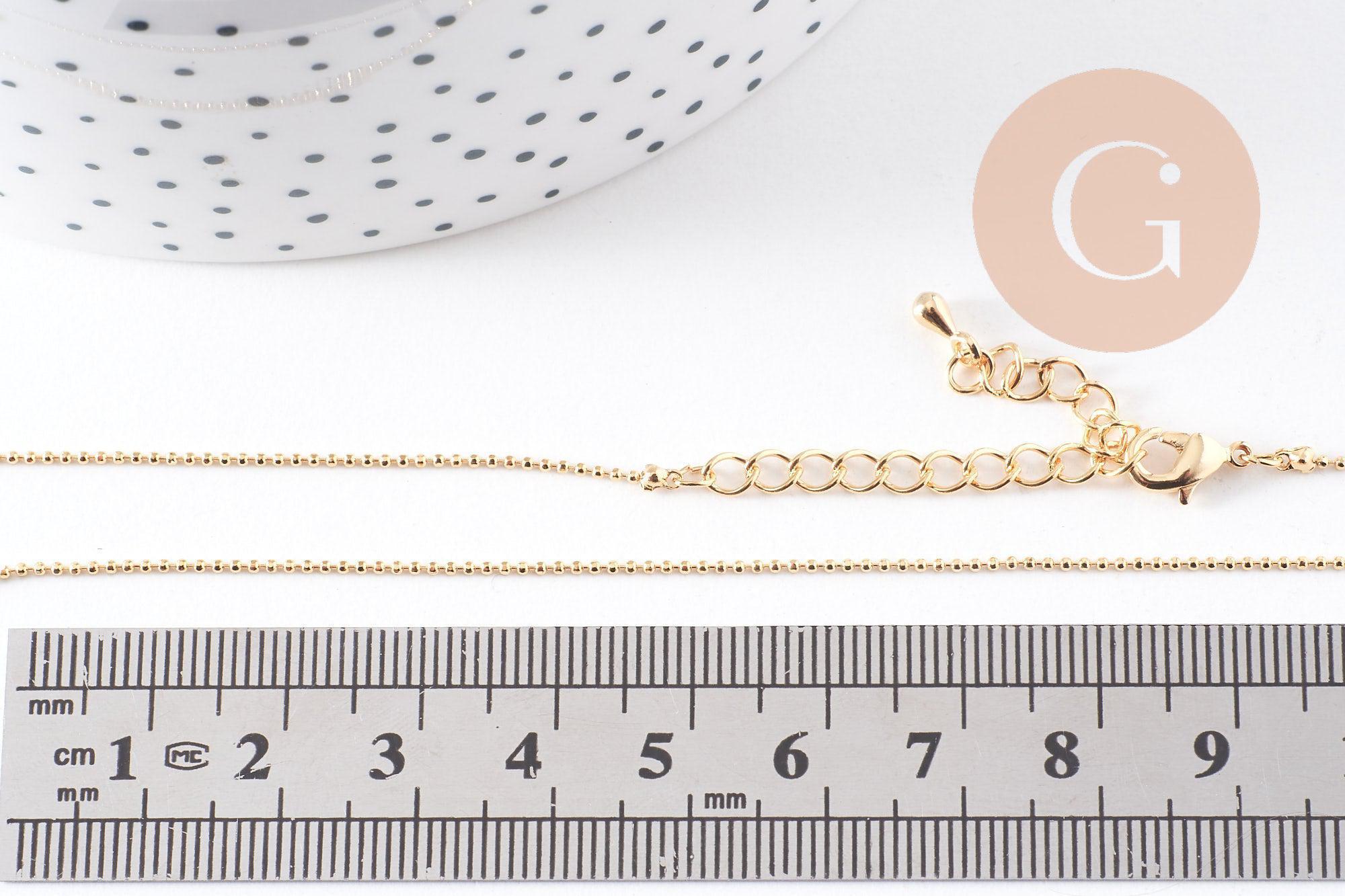 Chaine fine dorée boule 16K, fourniture créative, chaine collier, chaine laiton doré ,création bijoux, chaine complète,chaine dorée,1mm, 45cm