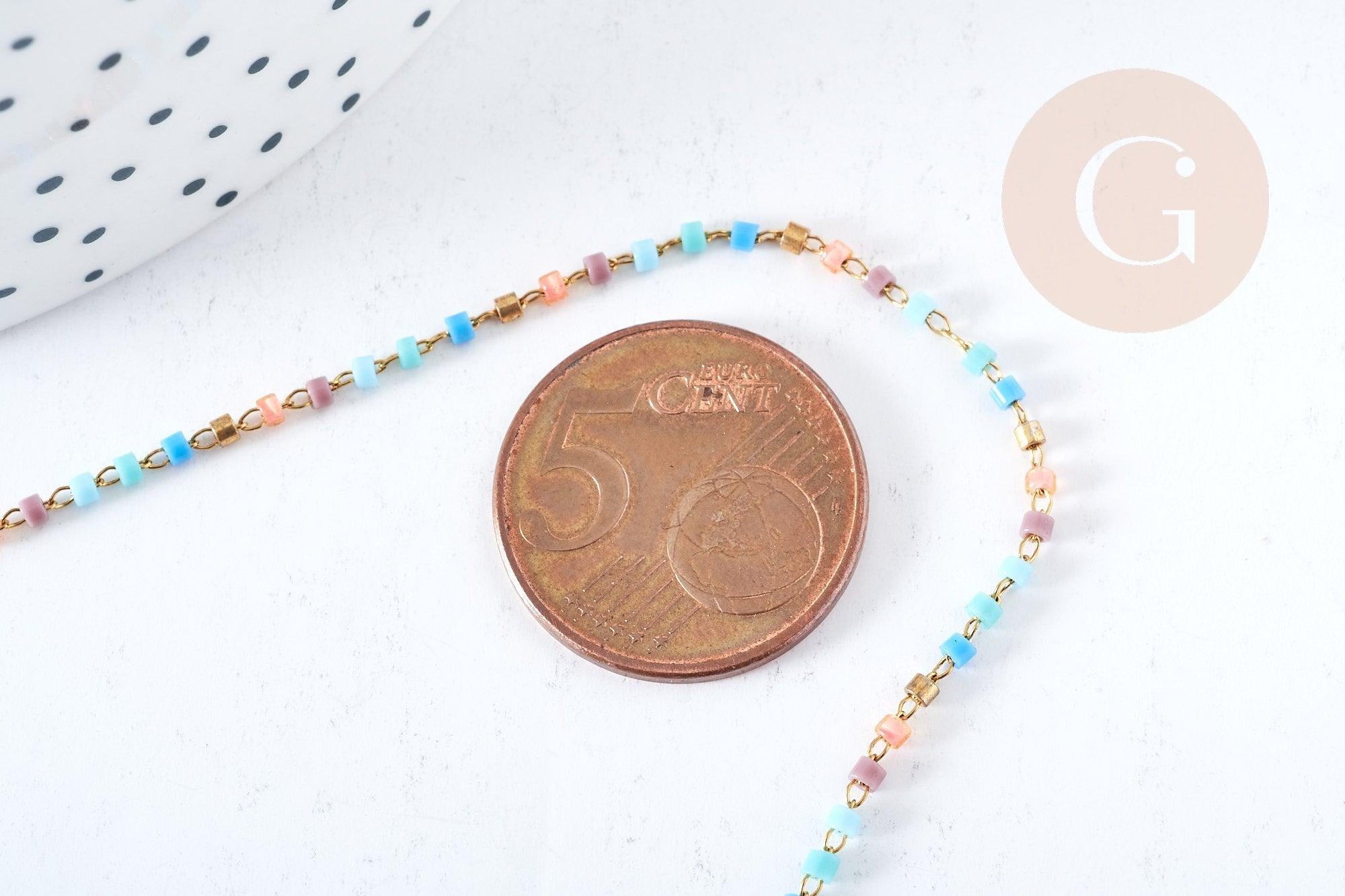 Chaine complète acier inoxydable 304 doré perles rocaille multicolores artisanales 40.7cm, x1 G8777