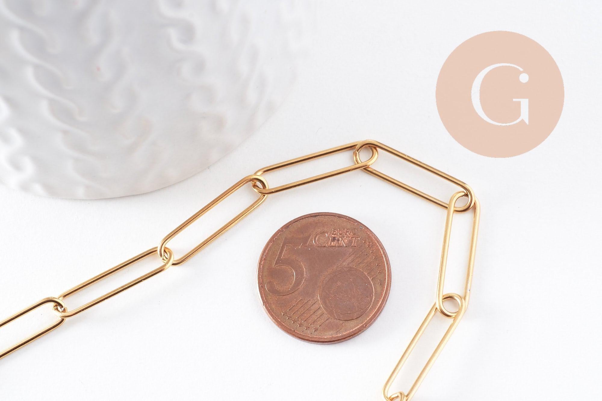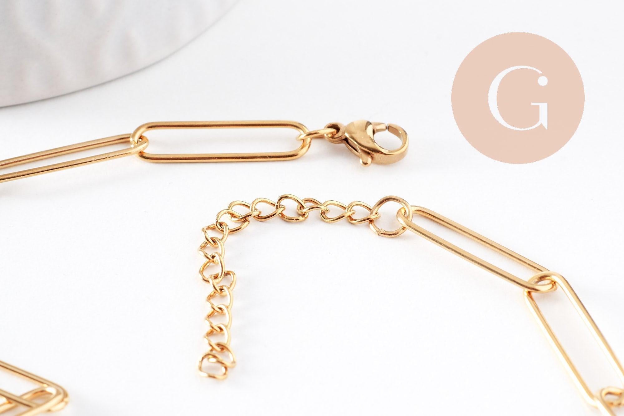 Craquez pour cette chaîne maille rectangle en acier inoxydable doré, parfaite pour des créations modernes et élégantes. Avec ses mailles rectangulaires de 10x3.5 mm et son fermoir déjà intégré, cette chaîne complète est prête à l'emploi. Robuste et résistante grâce à son acier inoxydable, elle conserve son éclat doré au fil du temps tout en restant hypoallergénique.