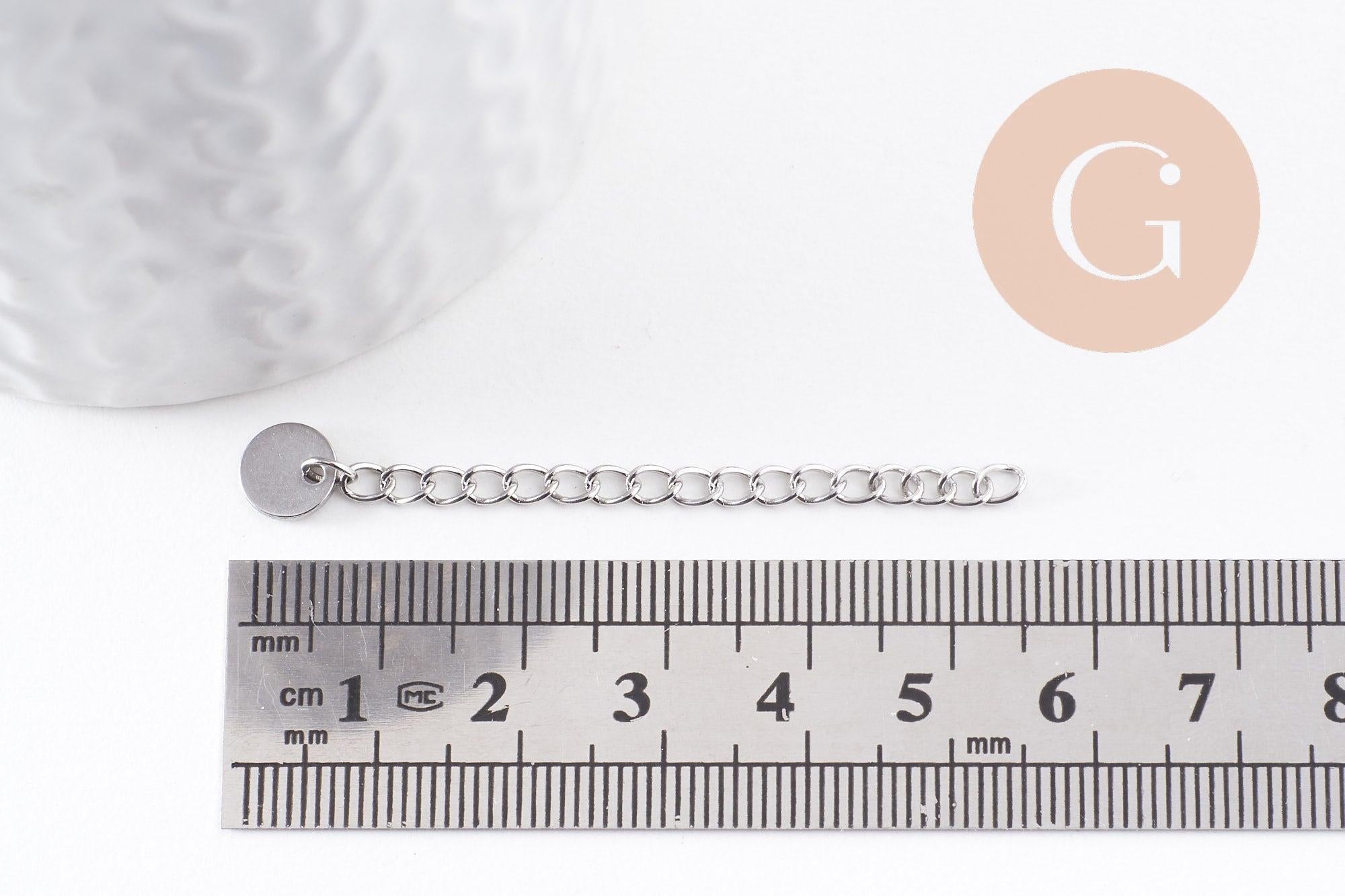 Chaine extension acier inoxydable platine avec breloque ronde de finition 57-60mm, x5 (G10055)