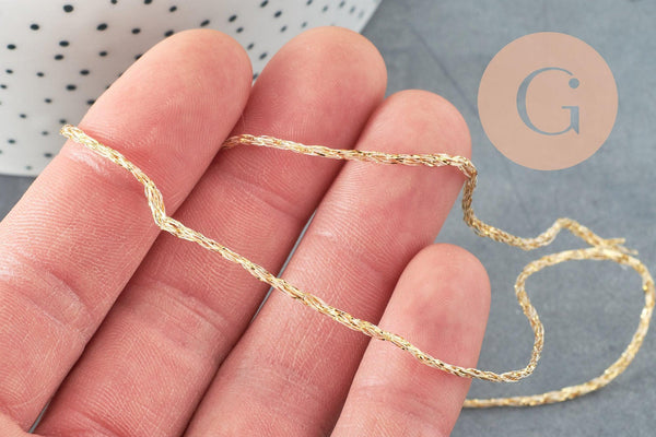 Pour confectionner vos bijoux, accessoires, sacs et vêtements ou pour le scrapbooking et autres loisirs créatif, nous vous proposons 1 mètre de cordon métallique doré