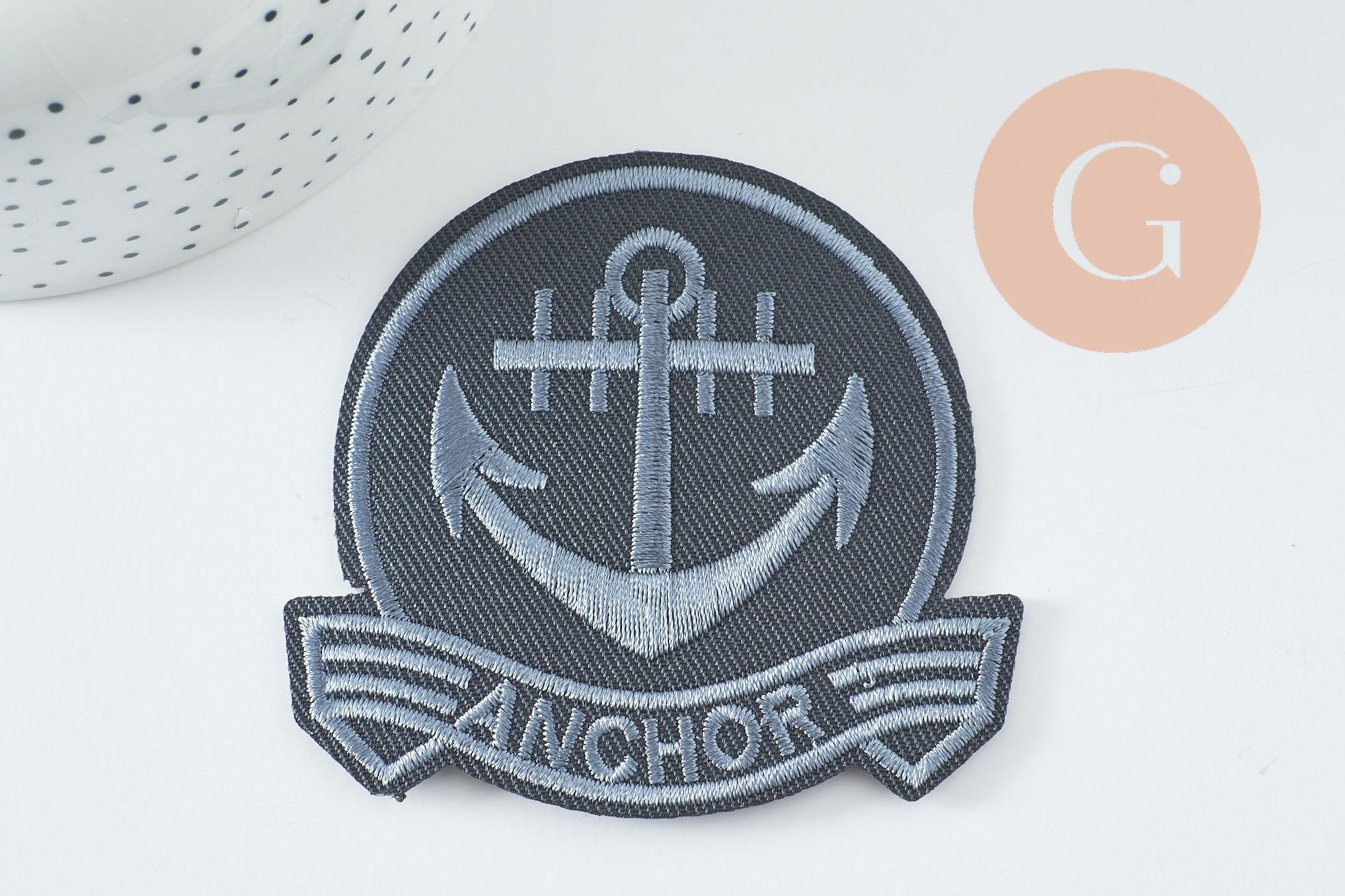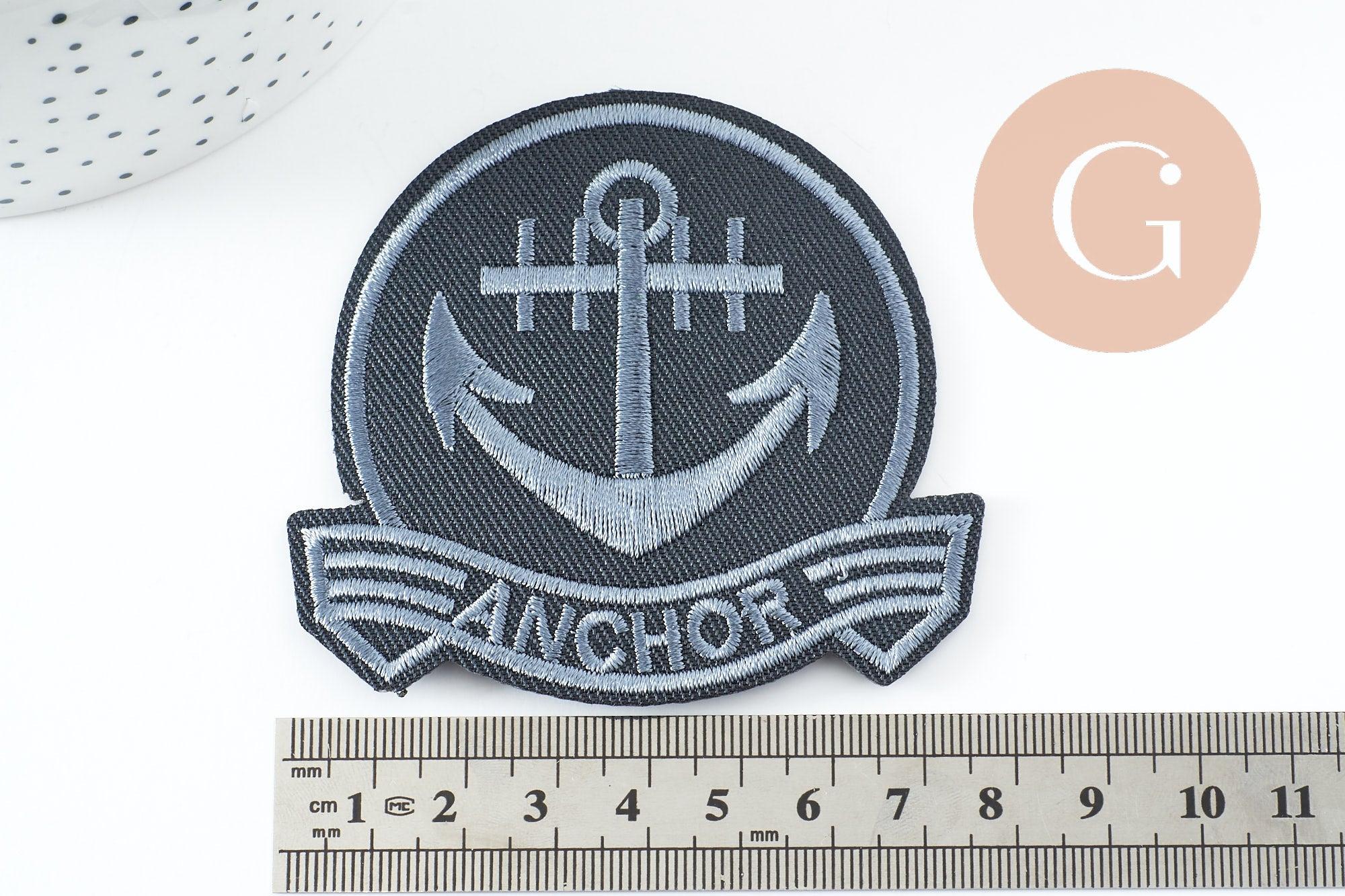 Ecusson brodé à repasser ancre marine 79mm customisation vêtement, écusson thermocollant,patch écusson brodé, x1 G9768