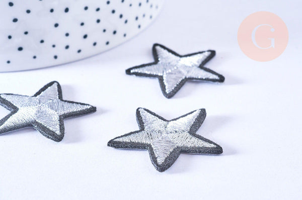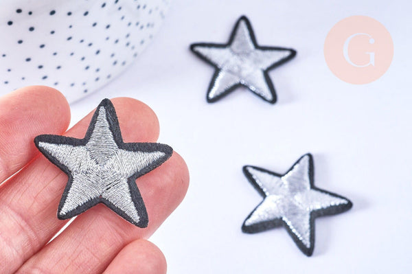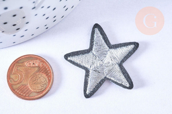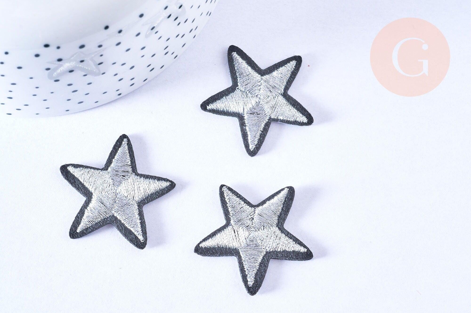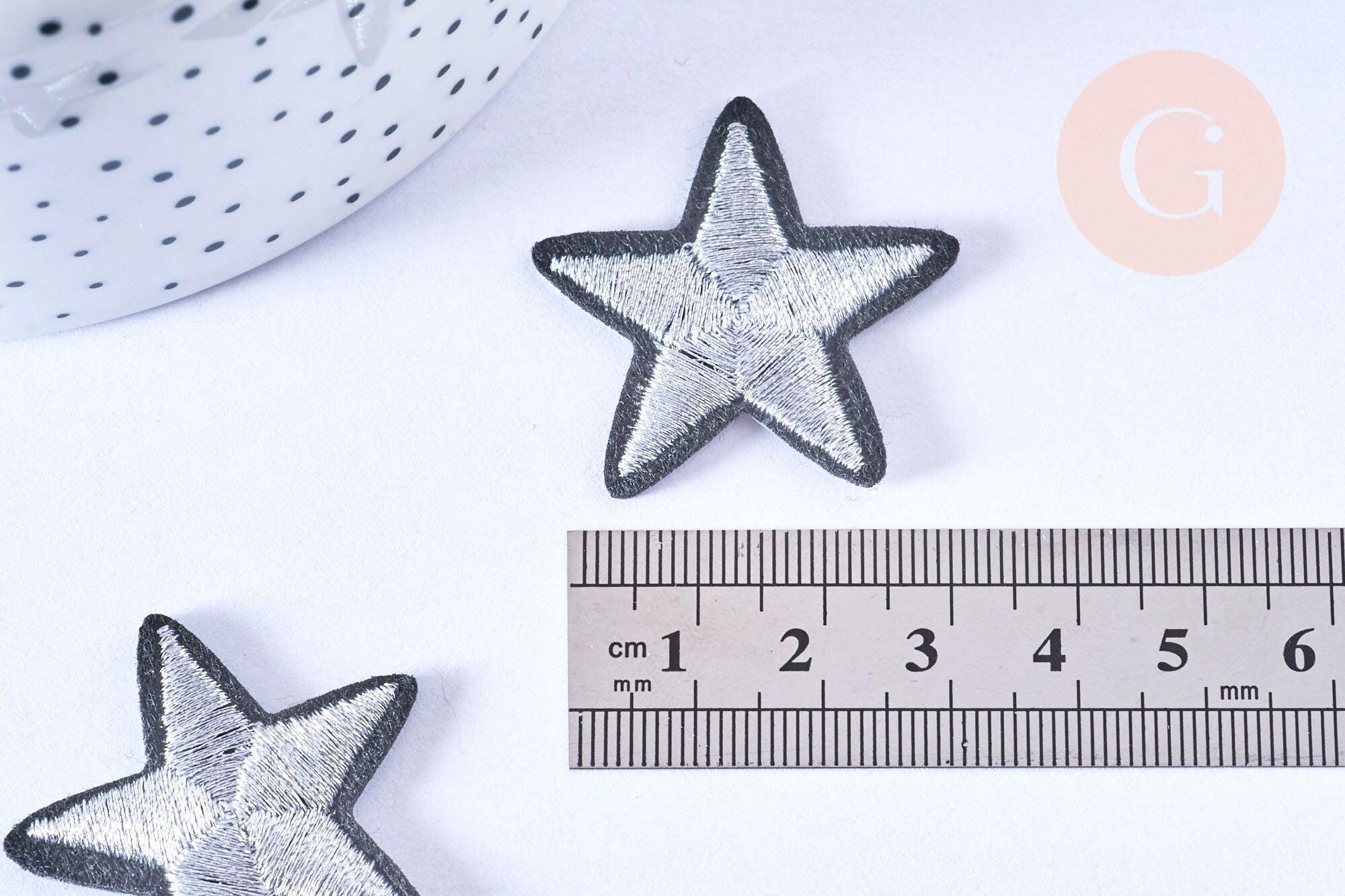 Ecusson brodé à repasser étoile argentée customisation vêtement, écusson thermocollant,patch écusson brodé,39mm,x2 G5804