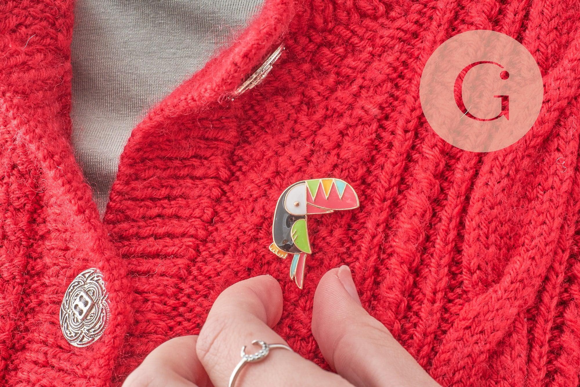 Nous vous proposons ce joli pin's, en zamac doré, représentant un toucan coloré avec le bec sur le côté. Celui-ci sera parfait sur une petite veste, une chemise ou même un manteau! Sur votre sac-à-dos pour aller au collège, au...