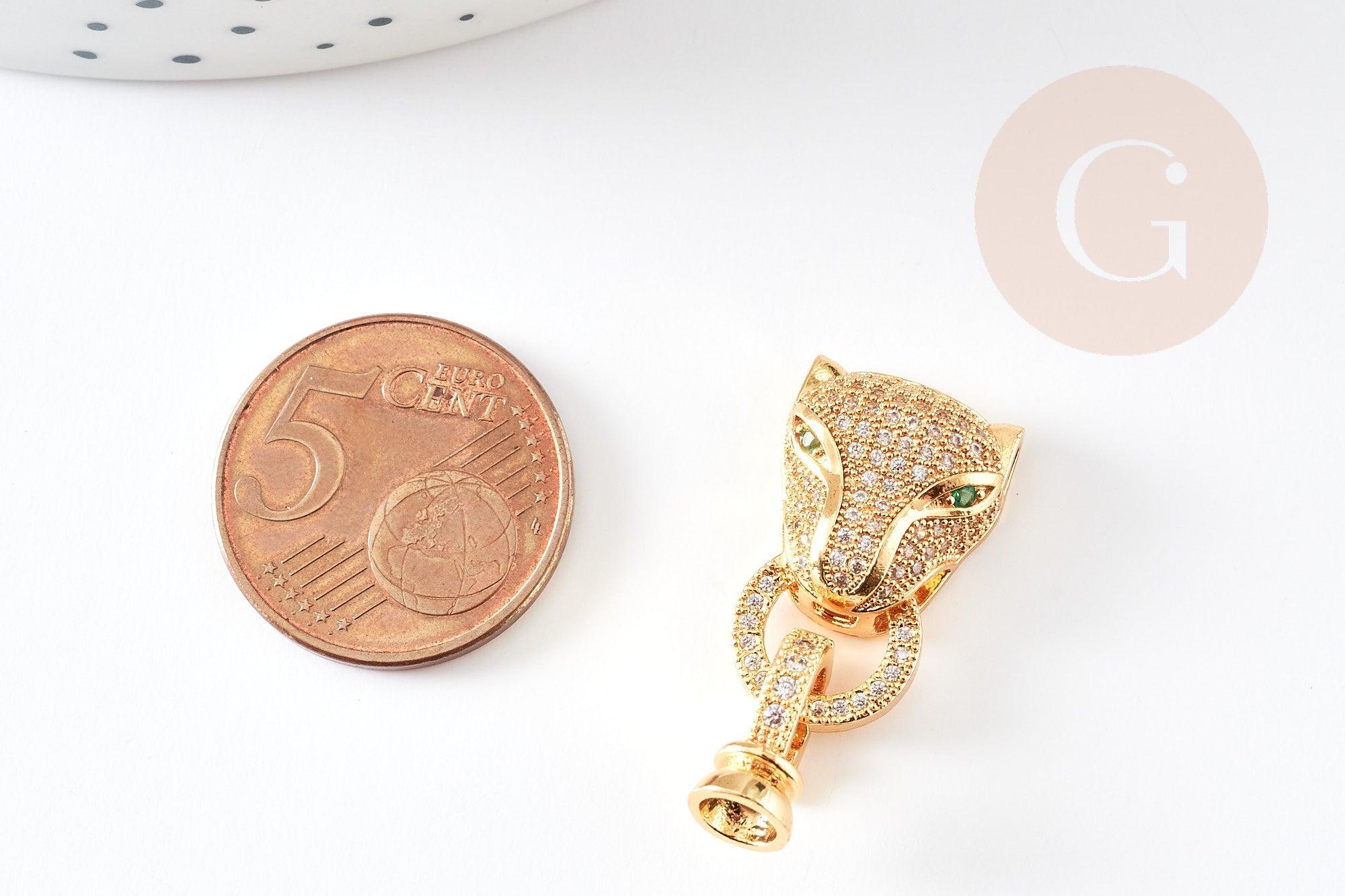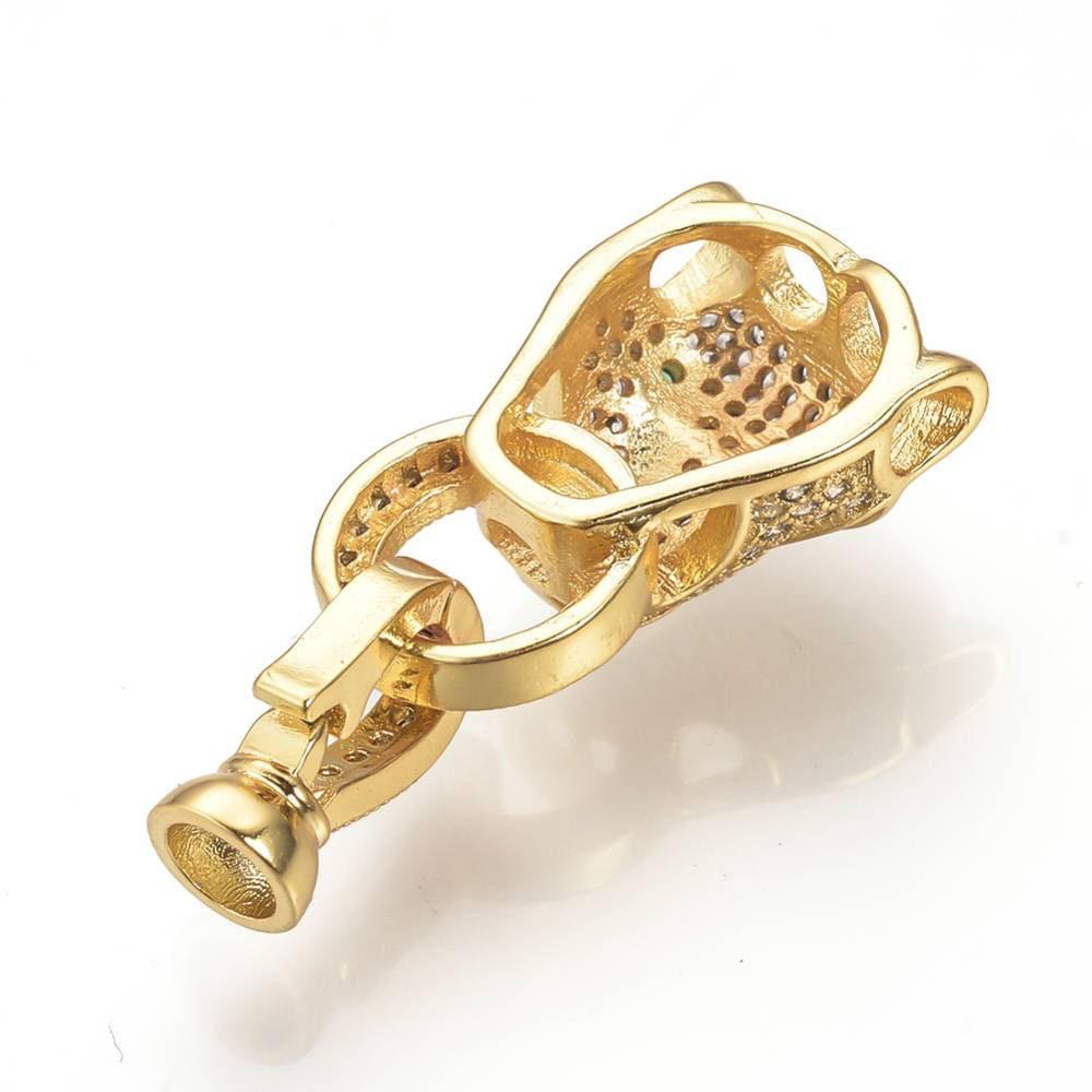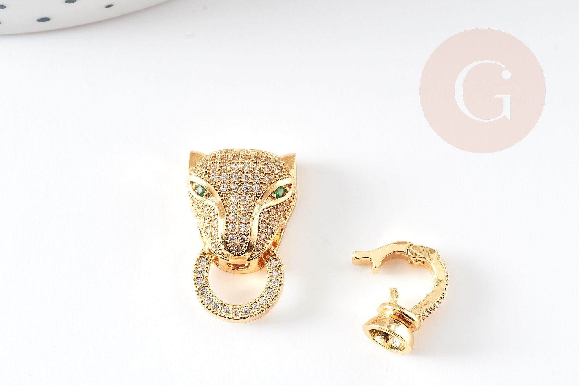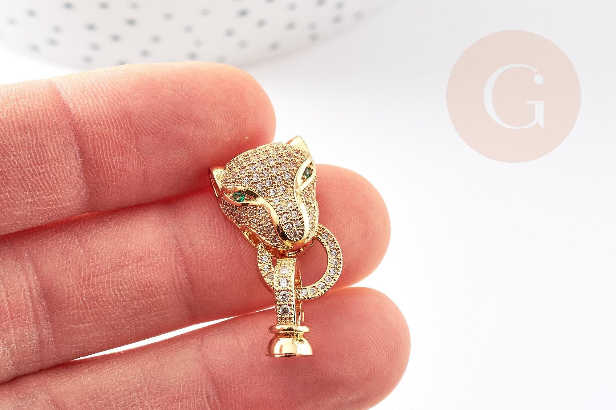 Ajoutez une touche féline et scintillante à vos créations avec ce fermoir panthère en laiton doré 18K, orné de strass en zircons. Robuste, chic et tendance, ce fermoir devient une pièce maîtresse dans vos bijoux fantaisie DIY.