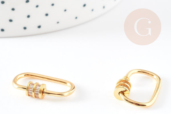 fermoir à vis laiton doré et strass, grand fermoir qualité, fermoir doré, fermoir cadenas,fabrication bijoux, l'unité,26mm