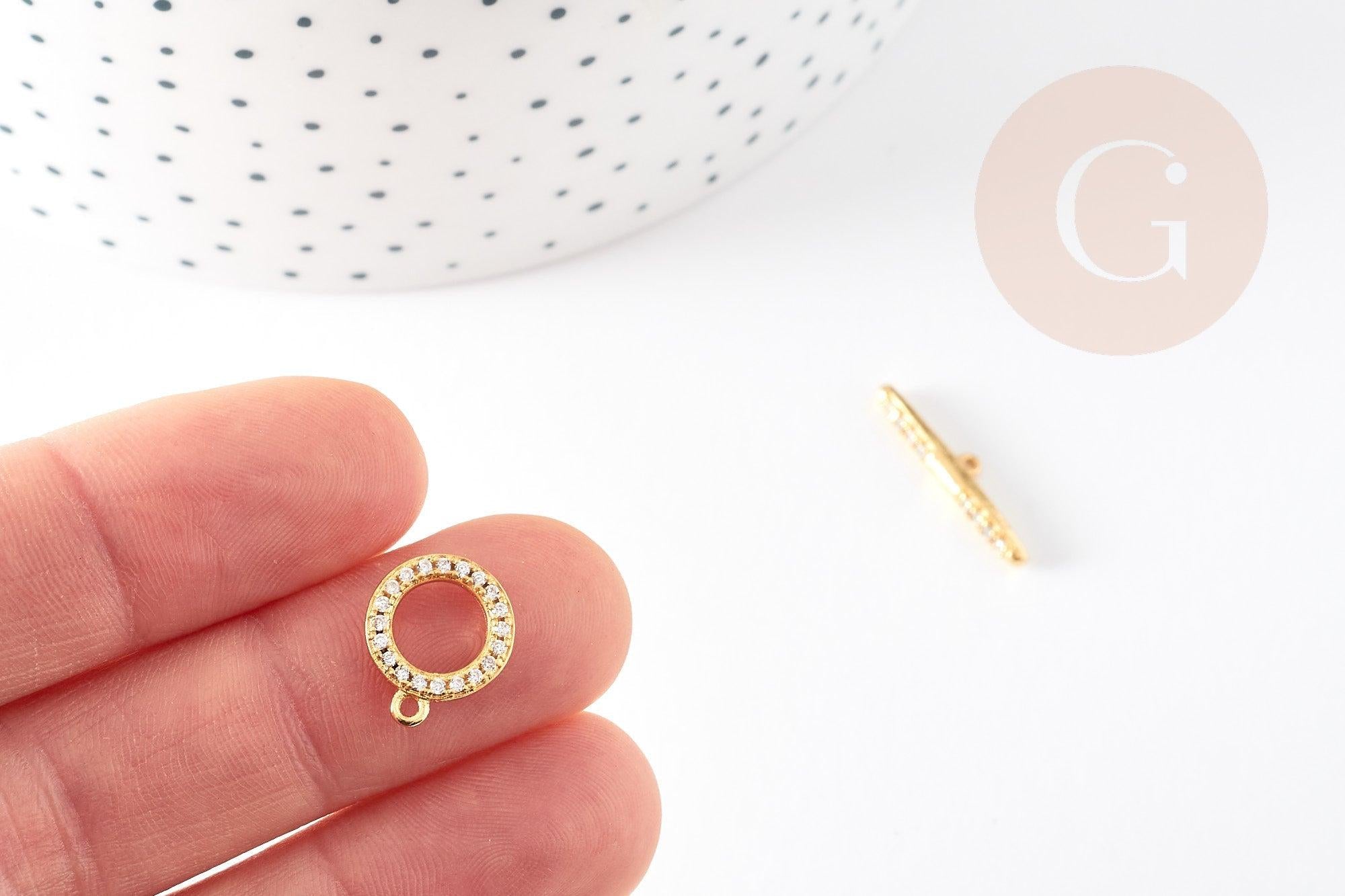 Ajoutez une touche d’élégance à vos créations de bijoux avec ce fermoir T en laiton doré 18K décoré de zircons blancs. Ce fermoir de qualité supérieure est parfait pour les colliers, bracelets et sautoirs. Son design raffiné et sa finition dorée en font un choix idéal pour sublimer vos bijoux DIY tout en assurant une fermeture solide et durable.