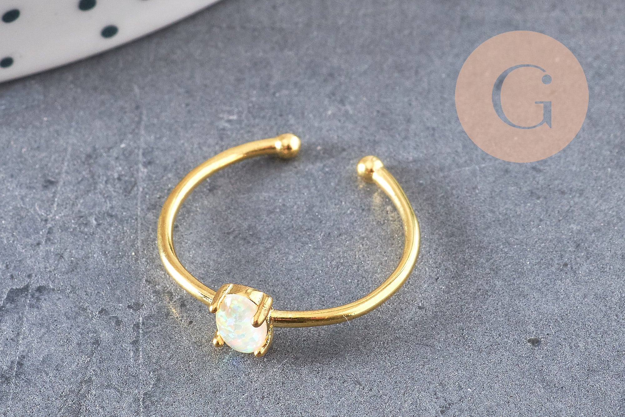 Bague dorée 14k opalite,creation bijou femme, bijou minimaliste, bague dorée pierre, cadeau anniversaire, 17.5mm,l'unité