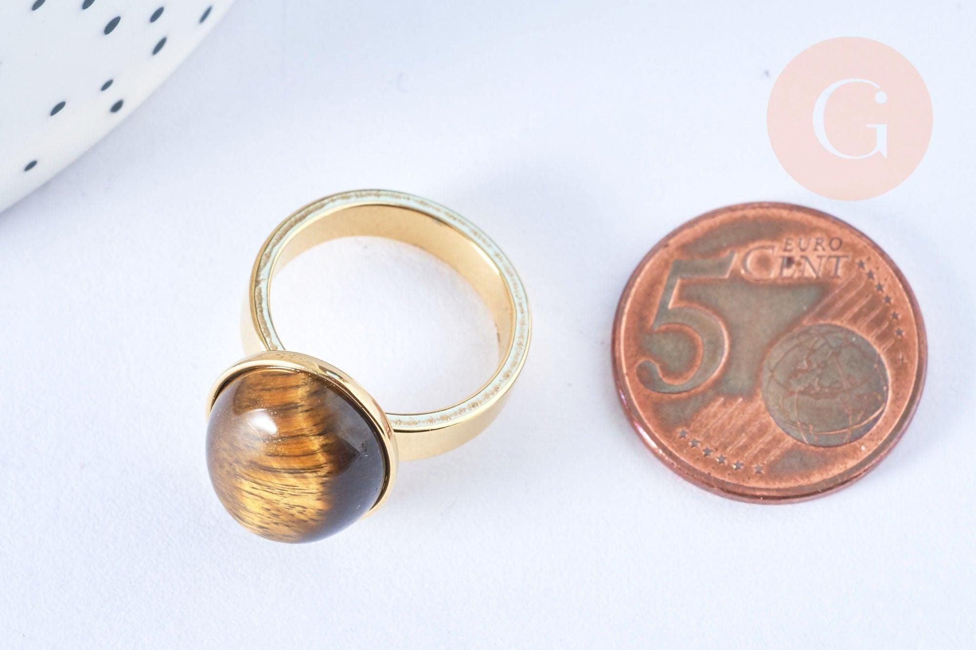 Une bague en acier doré inoxydable, décoré d'un Cabochon en oeil de tigre, pierre naturelle