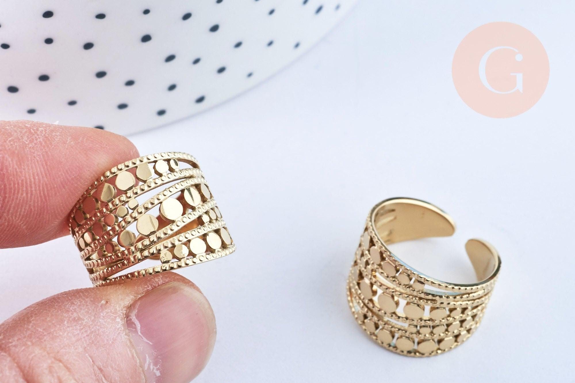 Bague réglable pois acier 304 inoxydable doré taille 54, x1 (G6569)