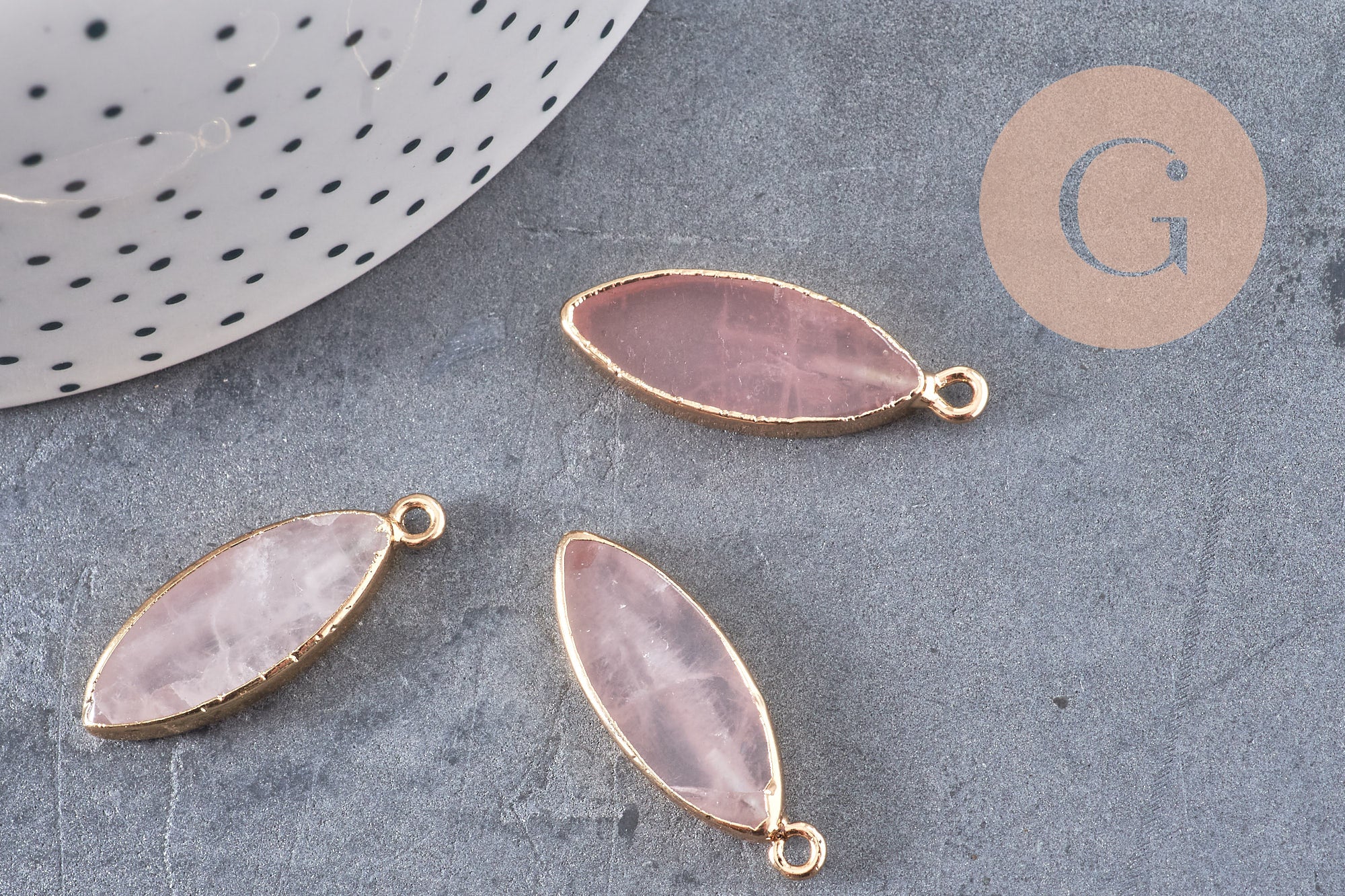Craquez pour ce petit pendentif très discret en quartz rose avec son support en fer doré.