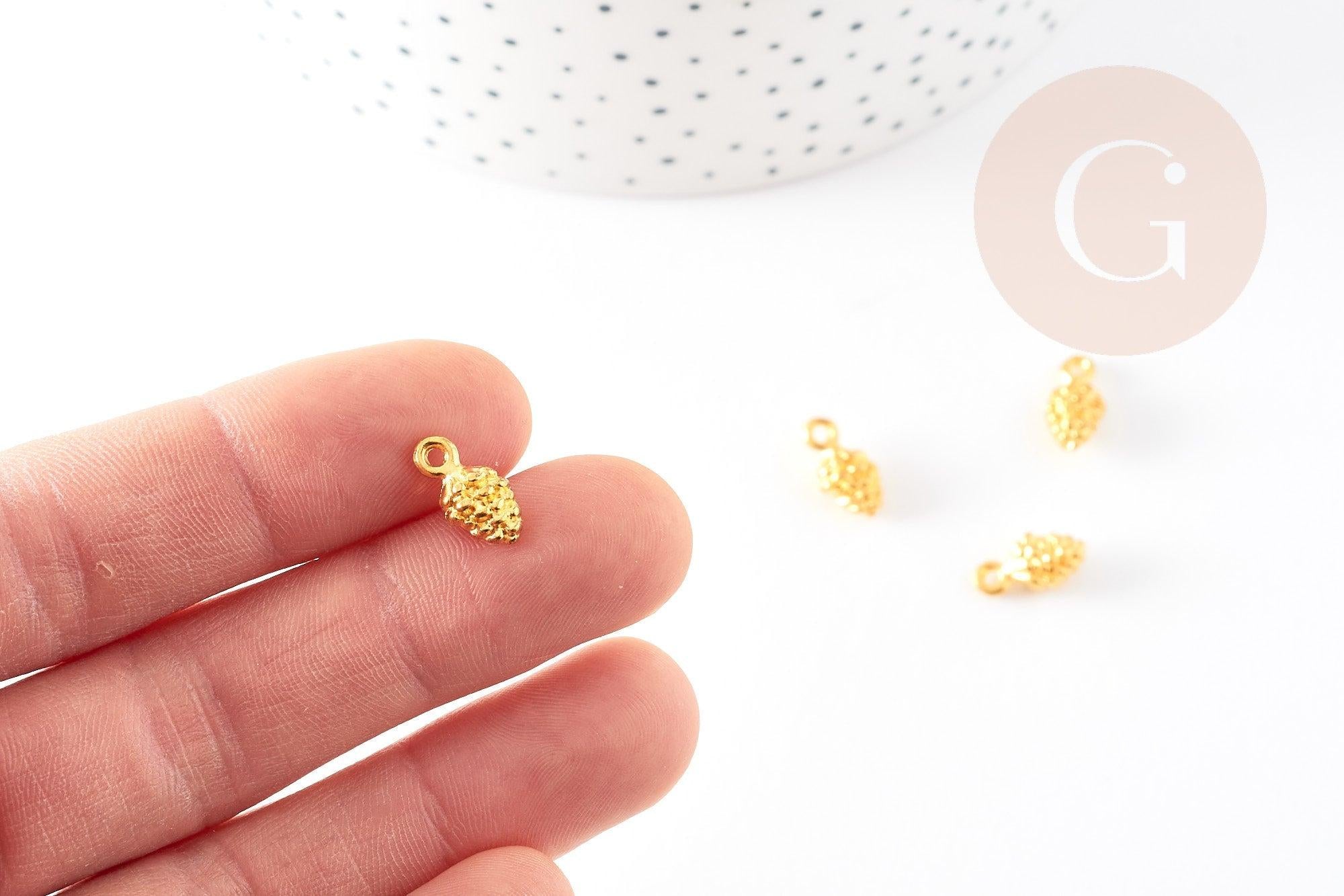 - Boucles d'Oreilles Naturelles : Créez des boucles d'oreilles élégantes en attachant ce pendentif pomme de pin à nos supports de boucles d'oreilles dorés. Associez-les à des perles complémentaires pour un look sophistiqué. Laissez cette breloque dorée ajouter une touche de nature à vos oreilles.