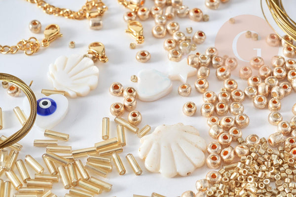 Le kit de création de 5 bracelets perles et nacre Mykonos est parfait pour les amateurs de bijoux fantaisie DIY. Cette pochette contient tout ce dont vous avez besoin pour réaliser de magnifiques bracelets personnalisés.