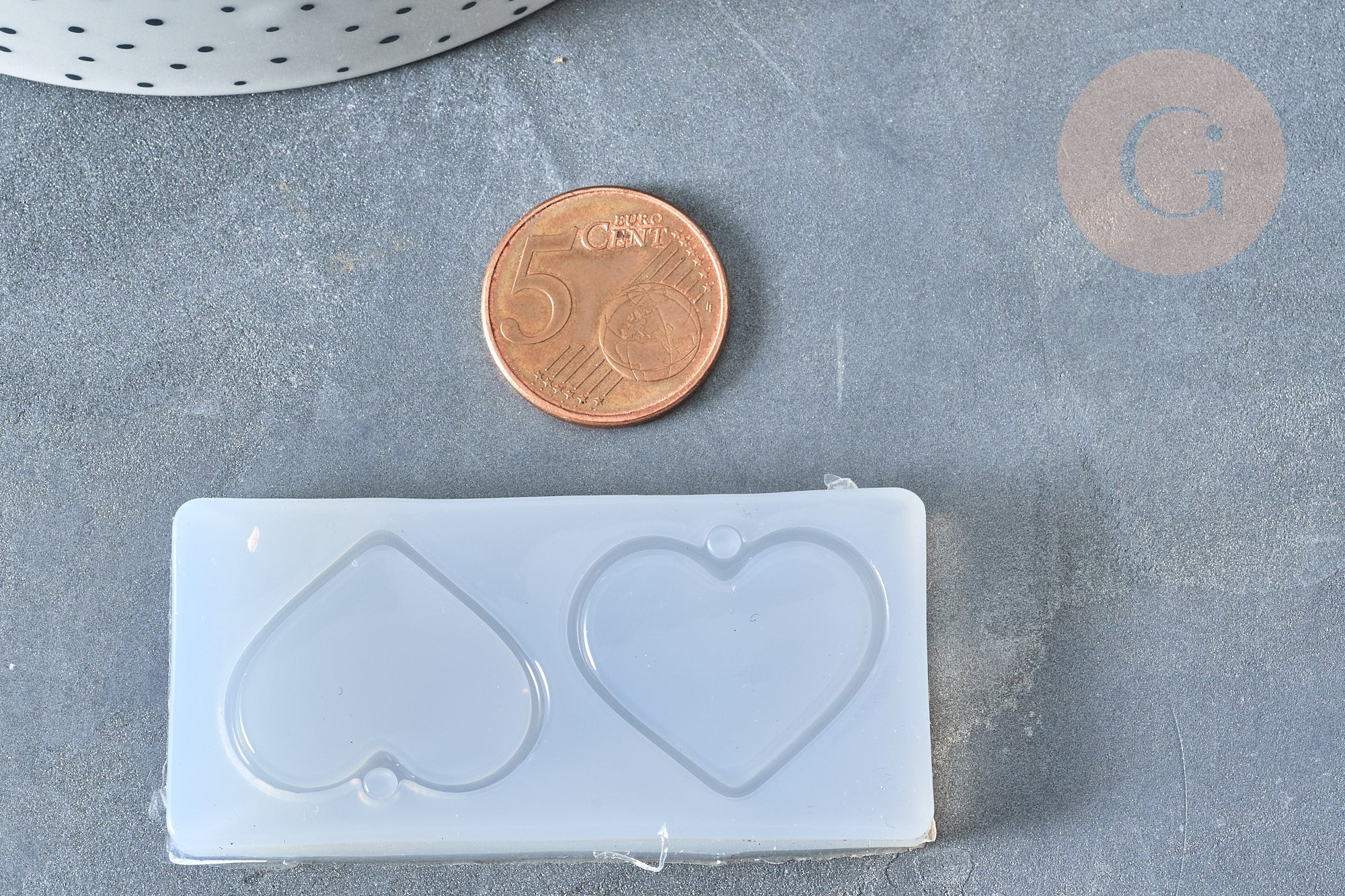 Un moule de forme cœur tendance très pratique pour réaliser une multitude de pendentifs et décoration de maison en résine époxy, avec ou sans inclusions.