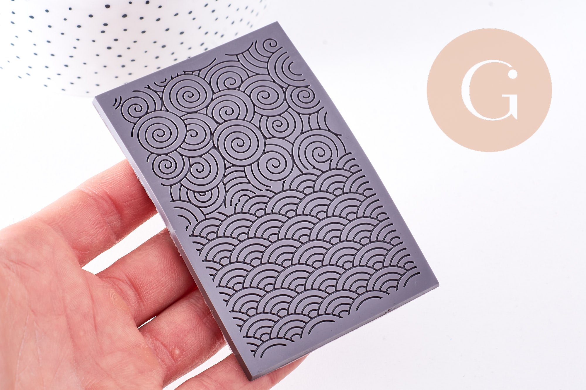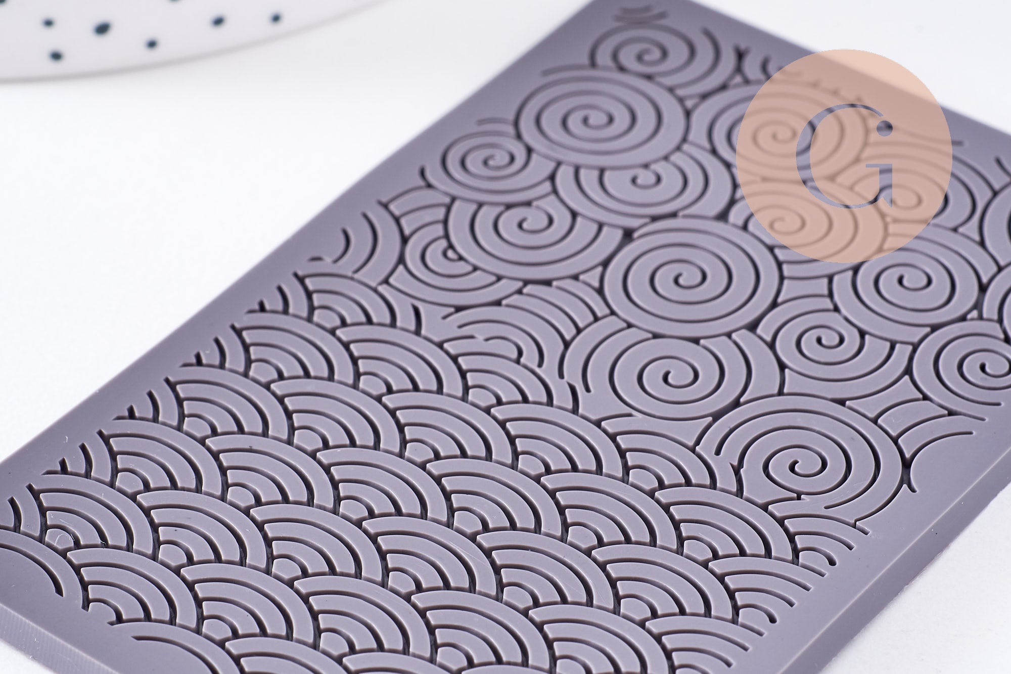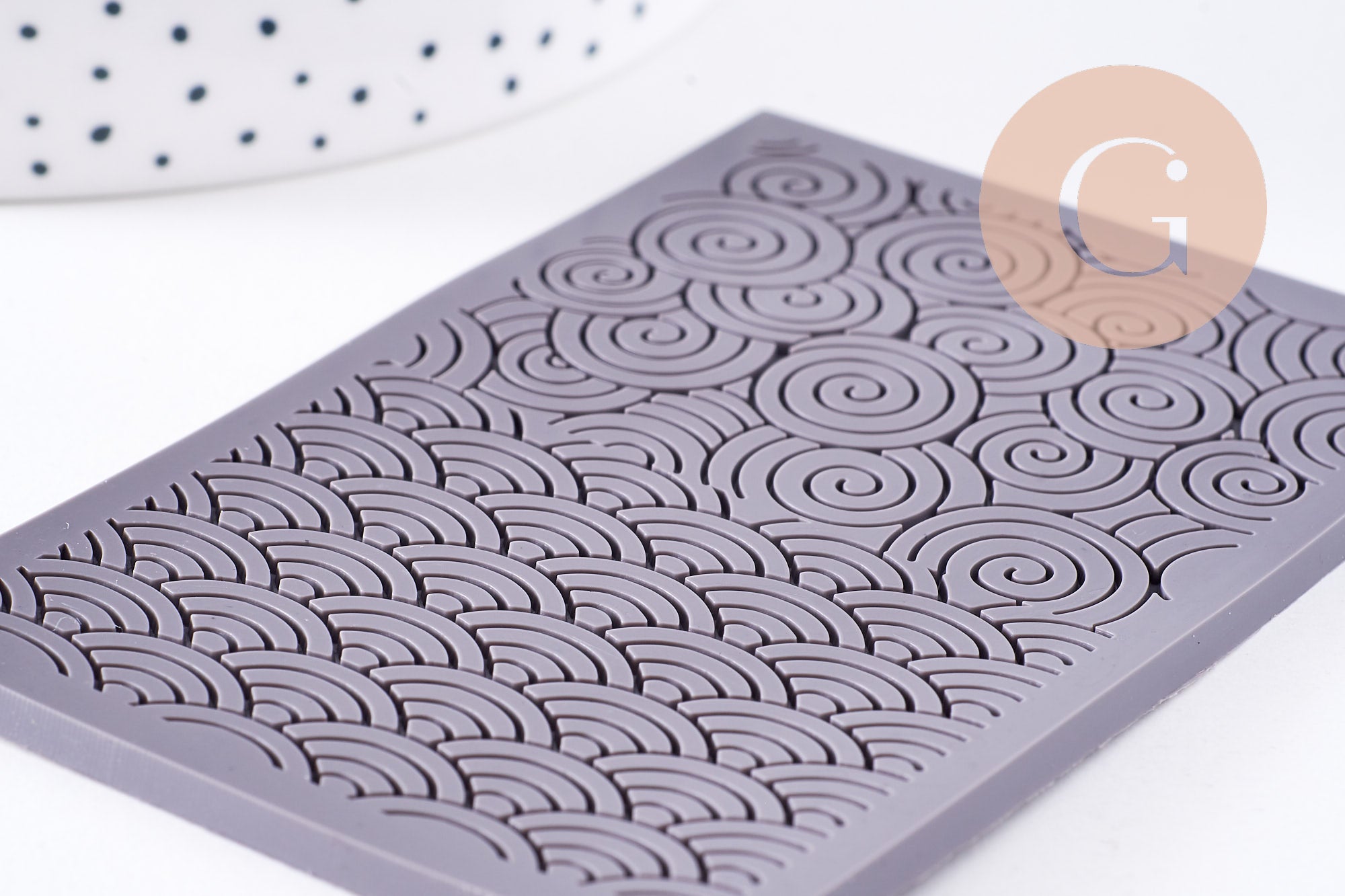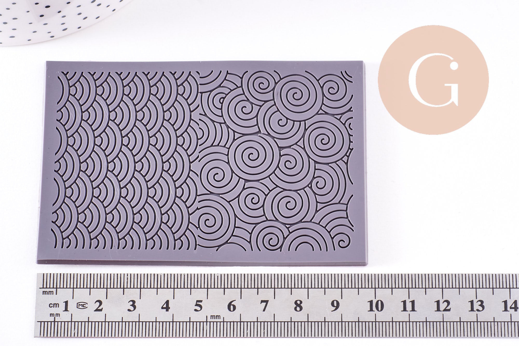 Ce tapis de texture souple aux motifs spirales et vagues est l’outil idéal pour créer du relief sur vos créations en pâte polymère (Fimo, Cernit, Sculpey...) ou en pâte autodurcissante. Facile à utiliser, il permet d’embellir vos bijoux, cabochons ou objets décoratifs avec des effets visuels originaux et réguliers.