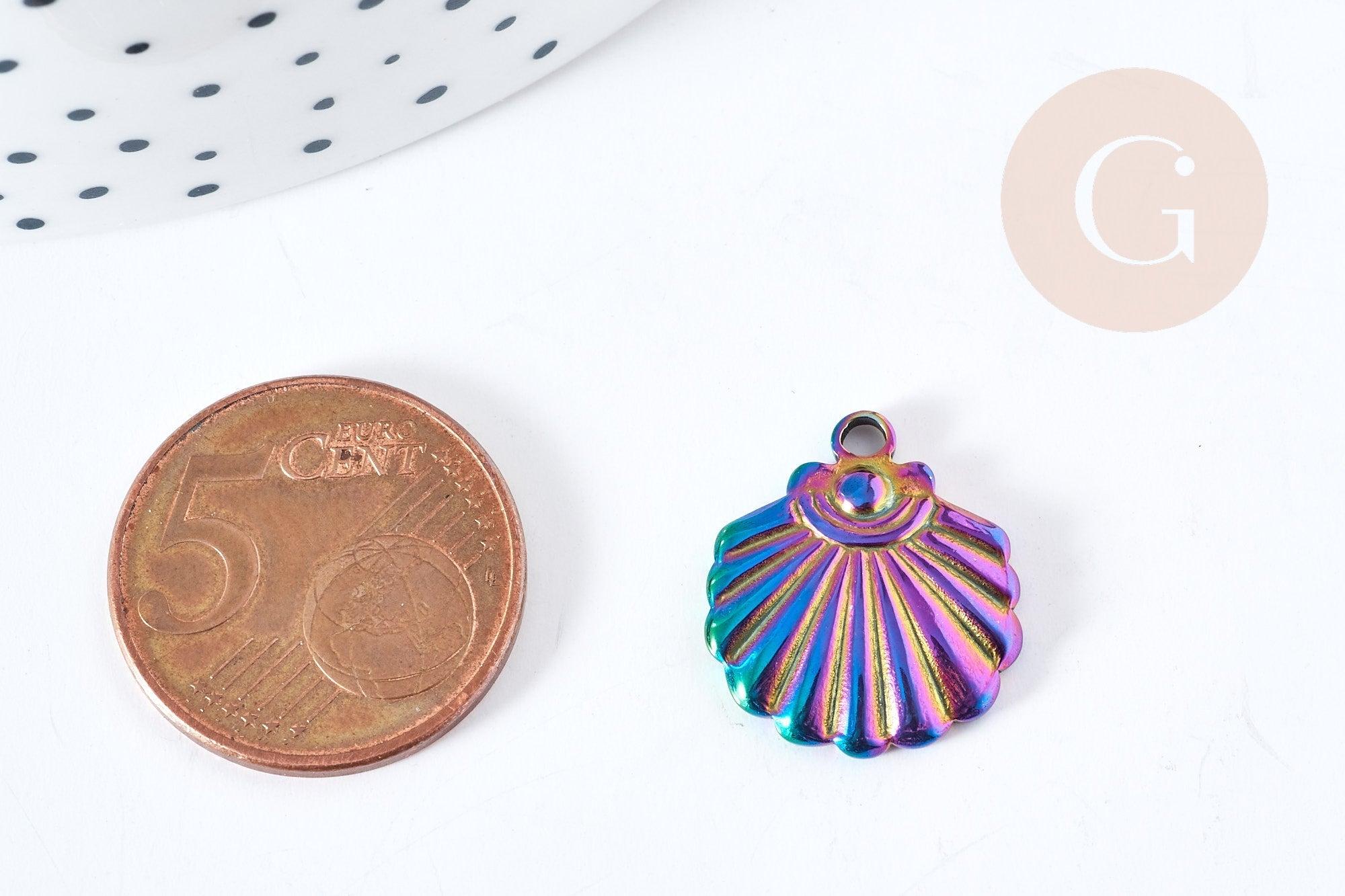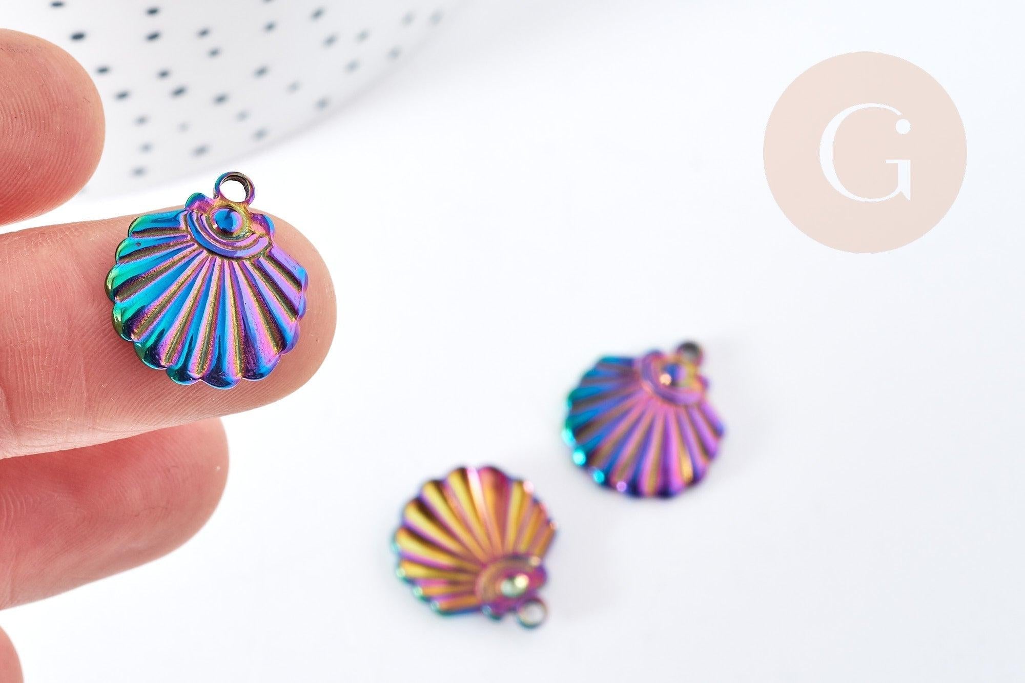 Ce pendentif coquillage en acier irisé multicolore mesure 18mm et sera parfait pour toutes vos créations de bijoux originales et modernes.