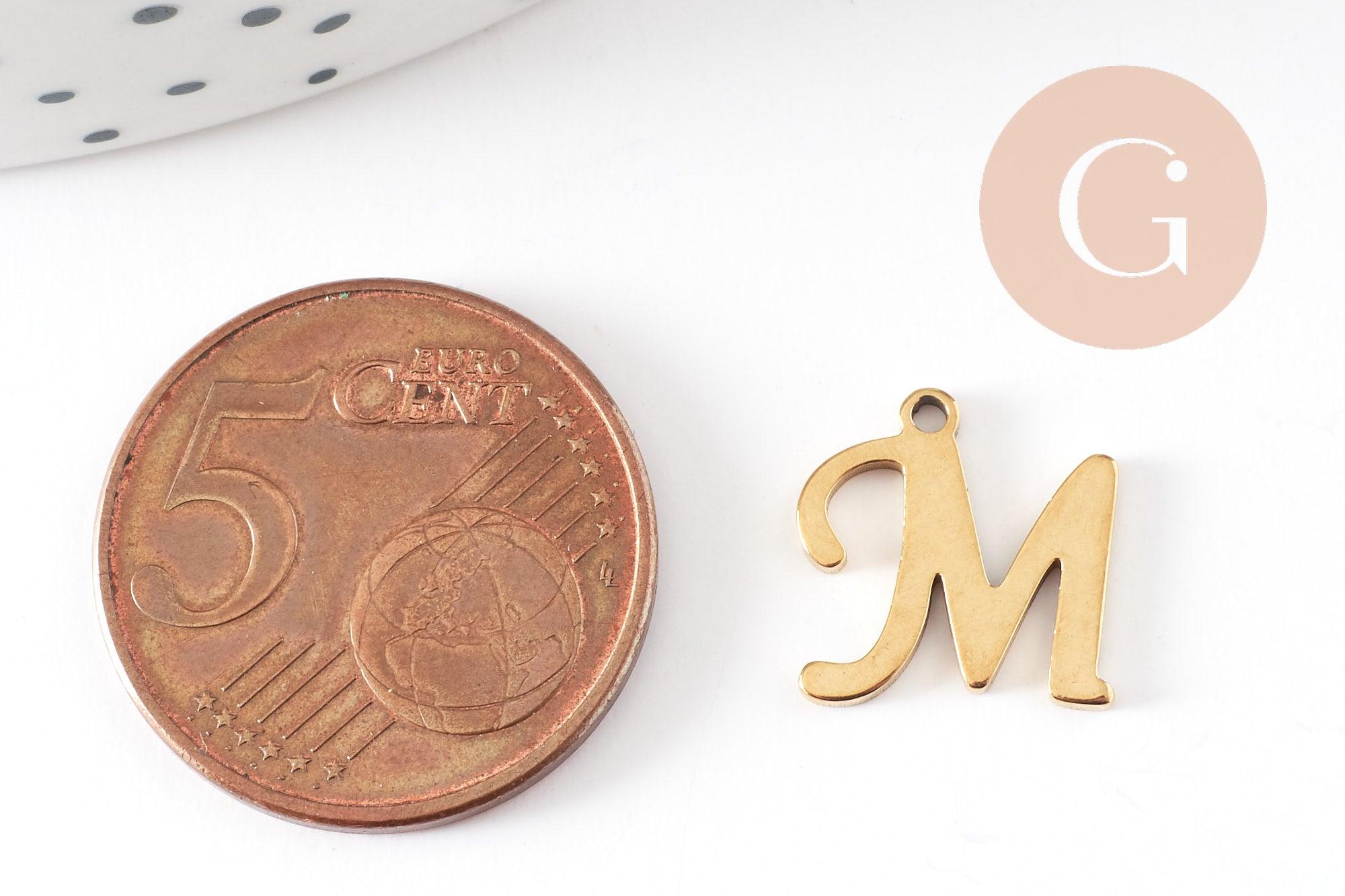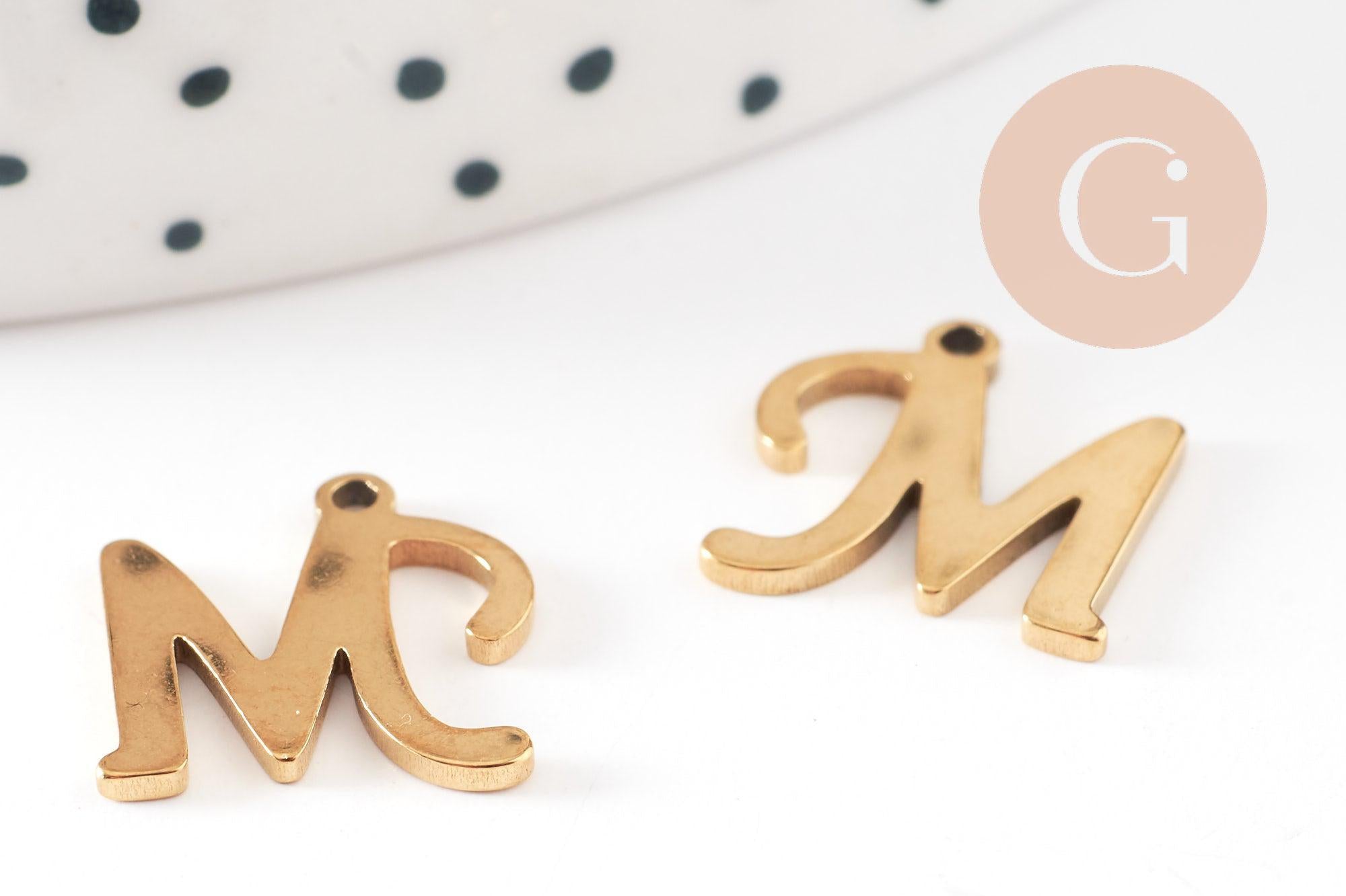 Pendentif lettre initiale M majuscule acier inoxydable 201 doré 12mm l'unité
