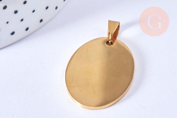 Un pendentif en acier doré inoxydable de forme ovale est idéal pour vos créations DIY. Un pendentif doré à utiliser pour vos créations personnalisées, à faire graver pour une occasion exceptionnelle.