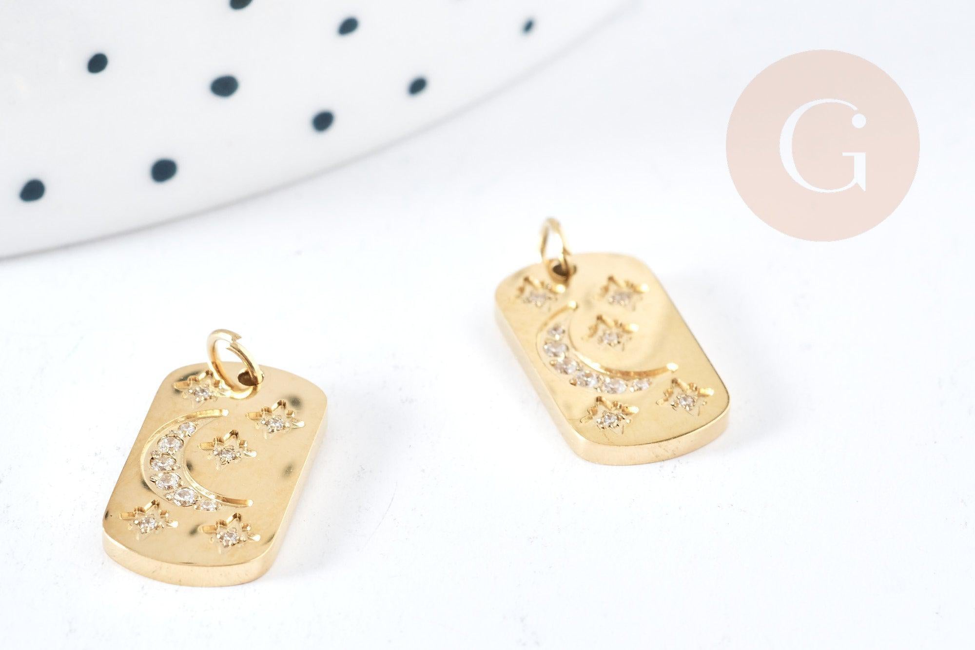 Ajoutez une touche céleste et scintillante à vos créations de bijoux avec ce pendentif rectangle lune étoiles zircons en acier inoxydable doré 316. Ce pendentif est parfait pour créer des pièces uniques et inspirantes.