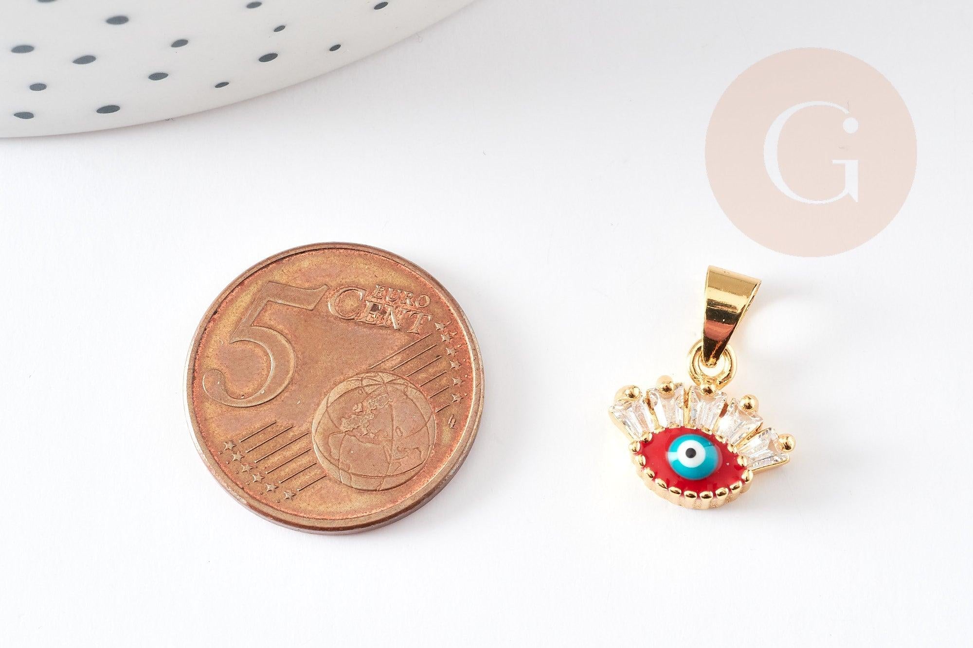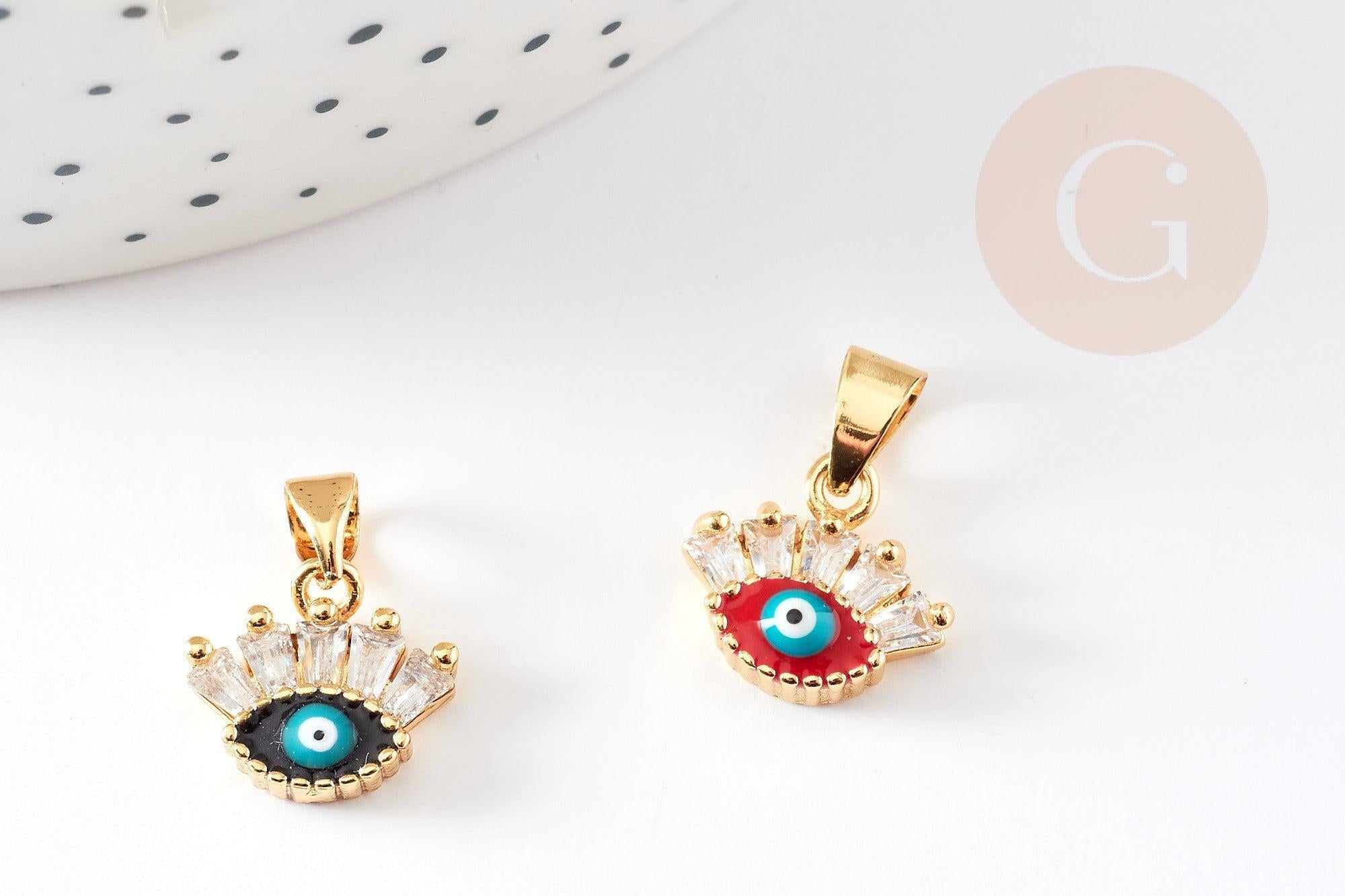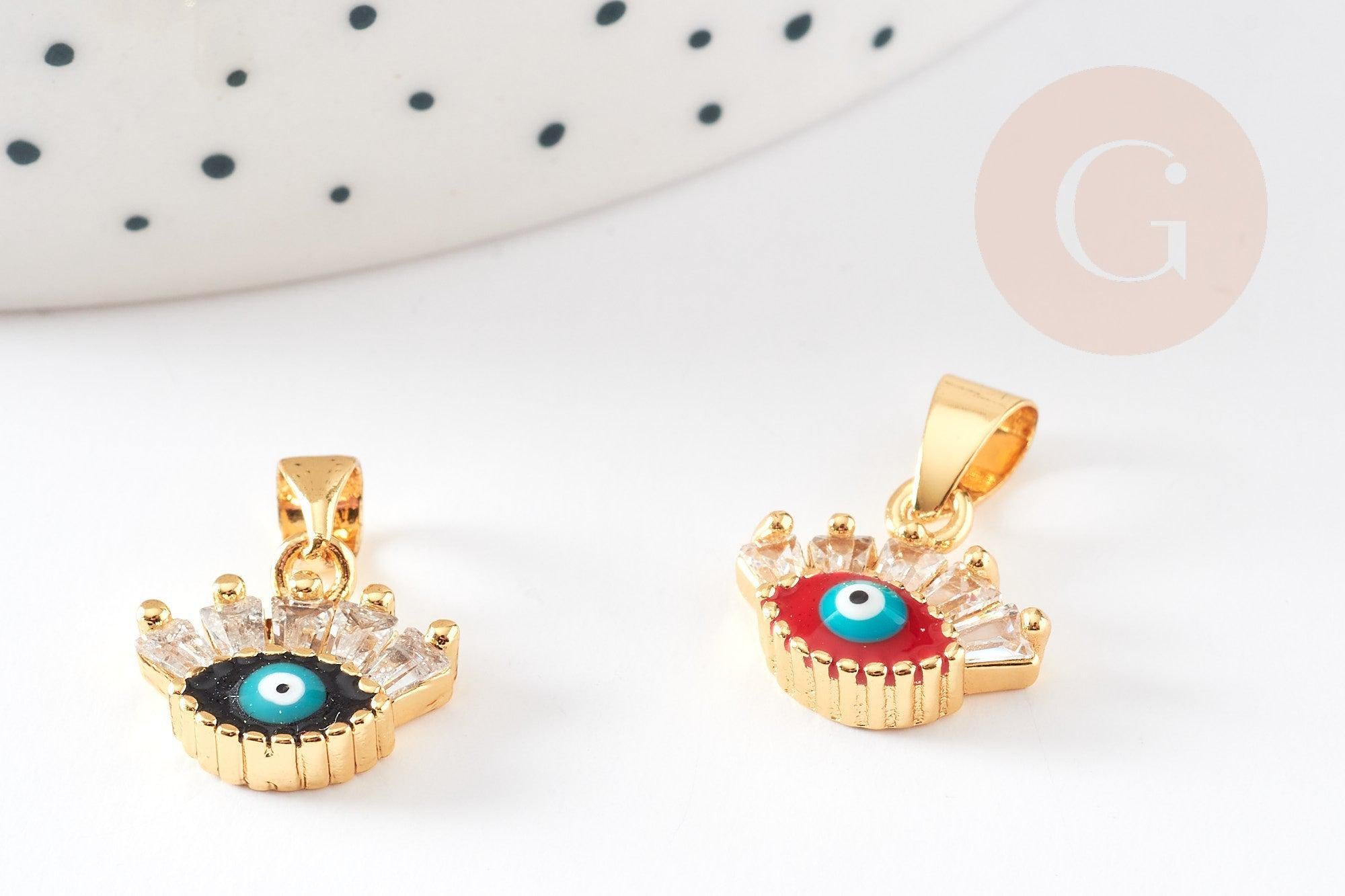 Pendentif oeil doré cristal zircon émaillé, pendentif doré, porte-bonheur,laiton doré,mauvais oeil,création bijoux,12x13mm,l'unité
