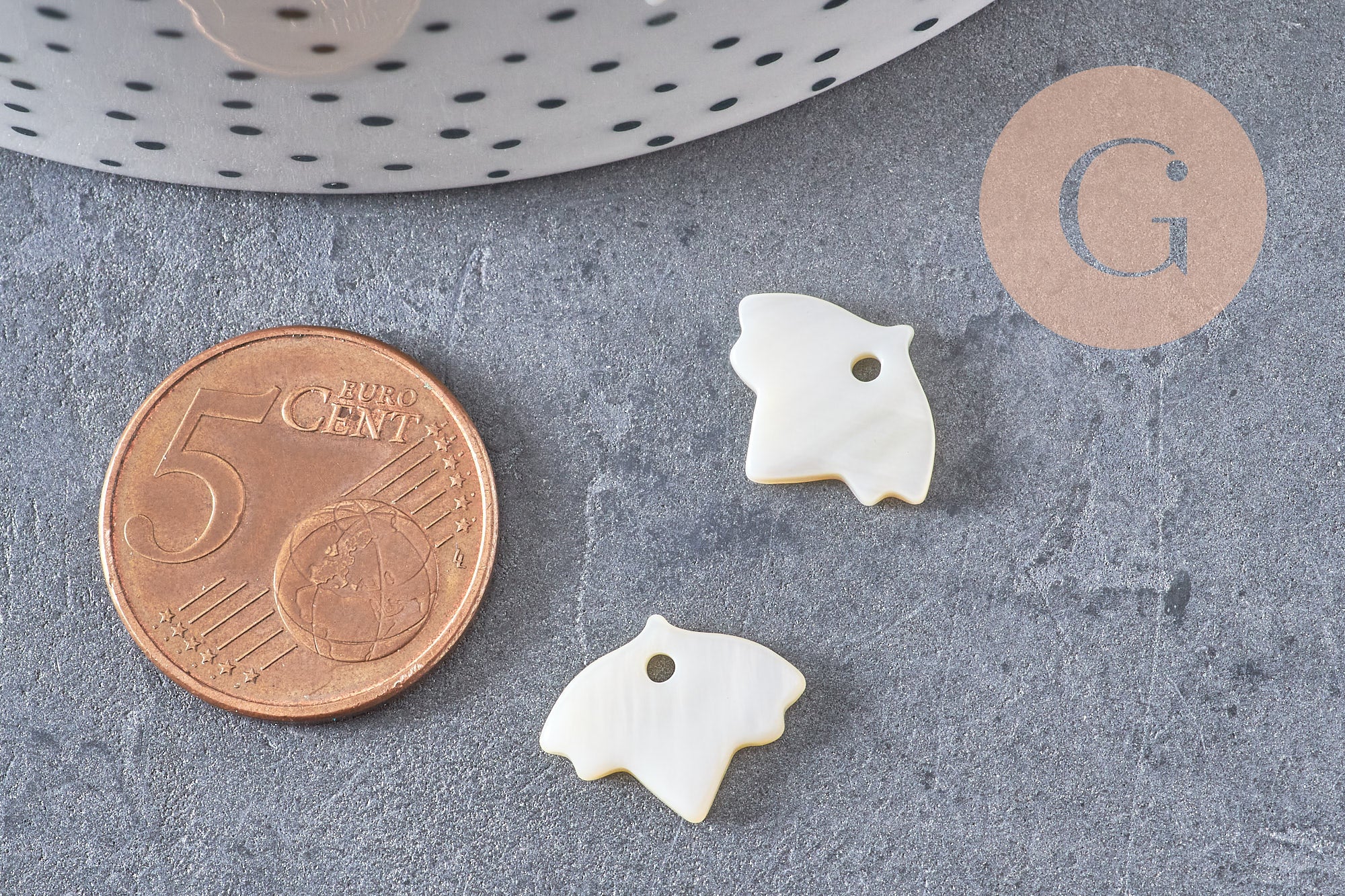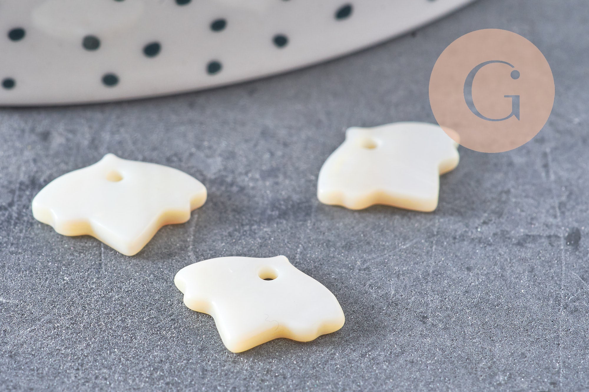 D'autres pendentifs et perles en nacre blanche, dans d'autres couleurs et matières sont disponibles dans la boutique gingerlily