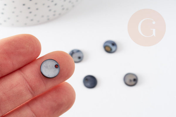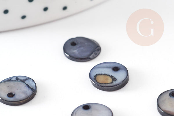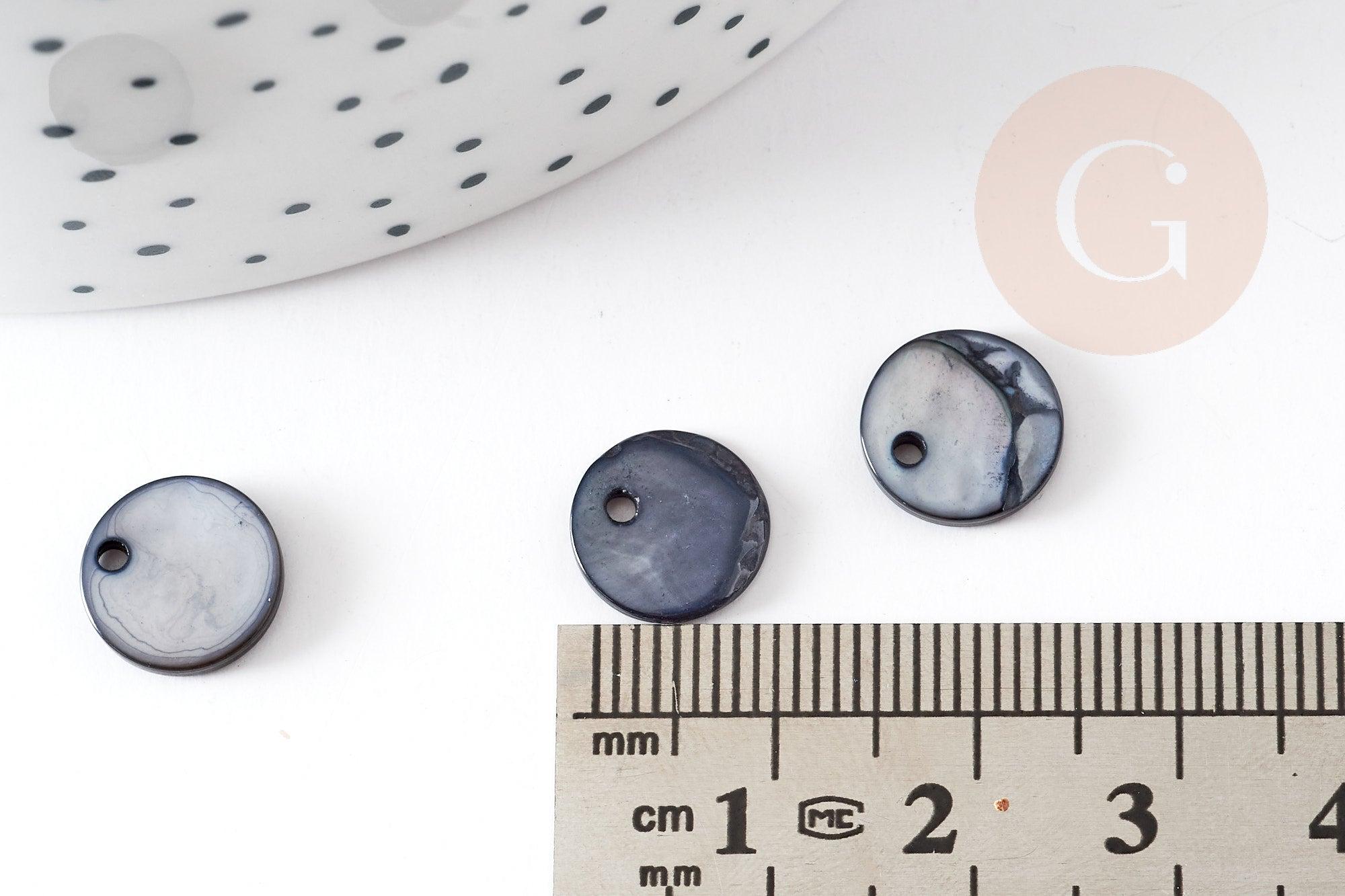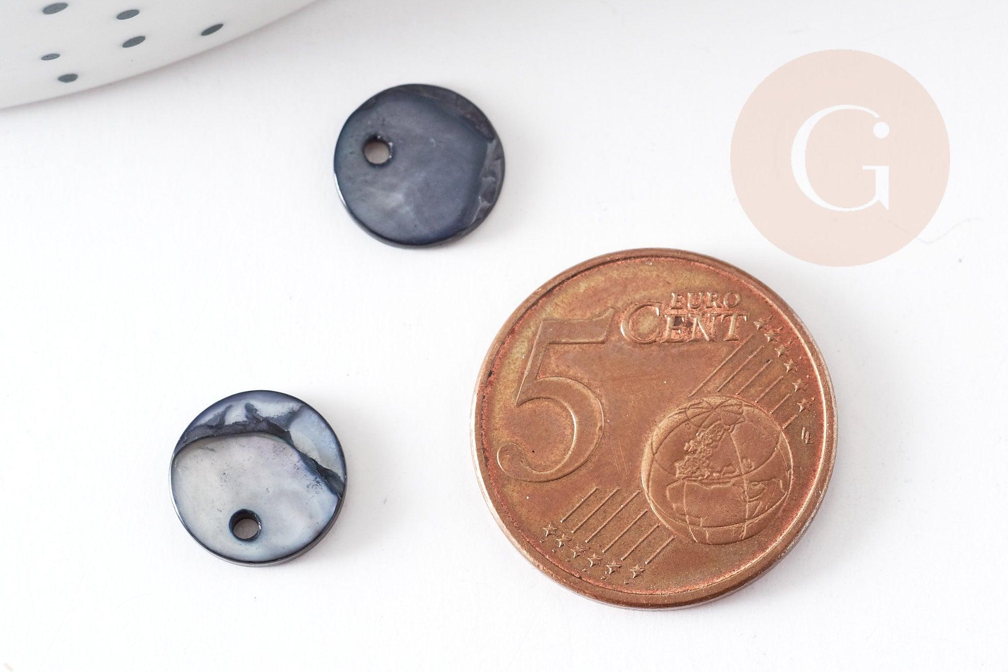 Pendentif rond nacre noire, pendentif coquillage, coquillage noir, 10mm, x10 (G1075)