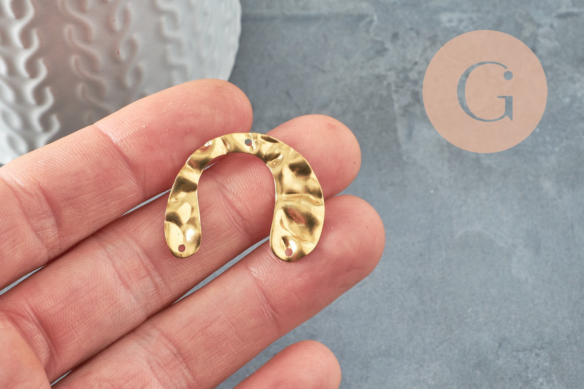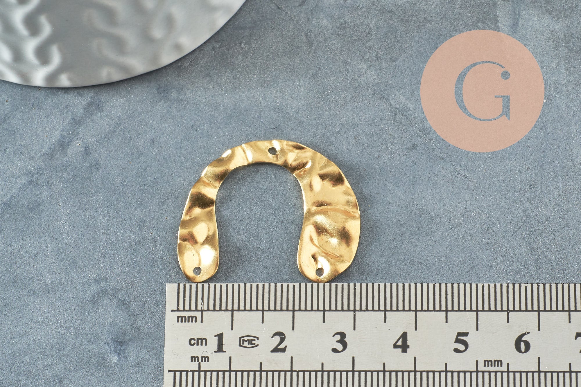 Pendentif arc demi-cercle U martelée laiton brut, apprêt doré, sans nickel,médaille dorée,médaille carré,30mm, X2 (G1254)
