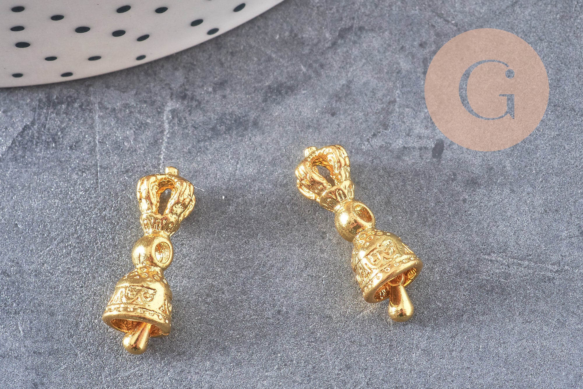 Pendentif cloche tibétaine Dorje Vajra laiton doré, breloque laiton brut, bijou laiton,création bijoux,pendentif laiton brut,22mm, l'unité