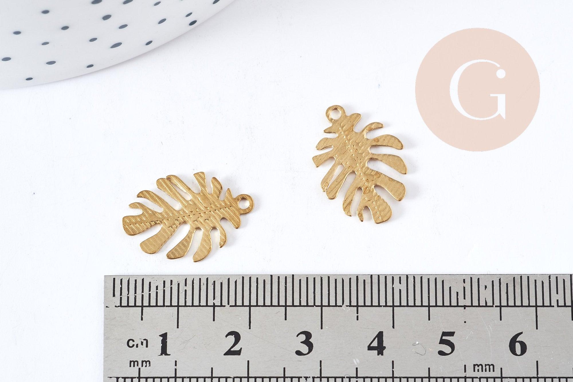 Pendentif Feuille Monstera striée laiton brut 13mm, fabrication bijoux fantaisie thème nature x2 G9252