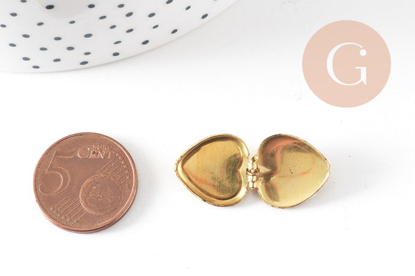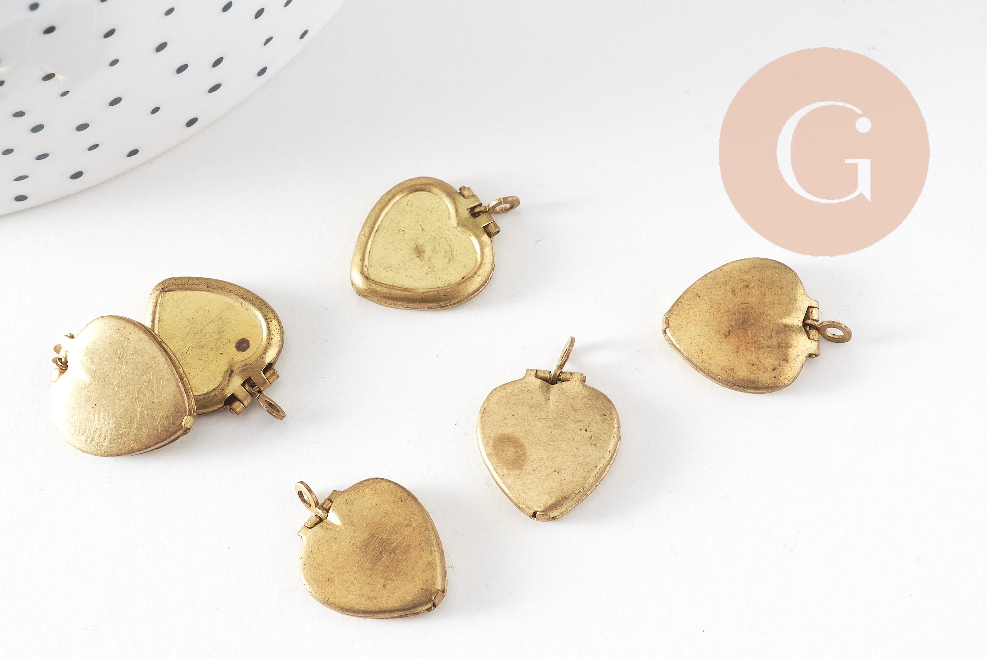 Pendentif locket cœur medaillon laiton brut, fournitures créatives, médaillon Vintage, création collier, fournitures laiton brut,15mm,lot 5
