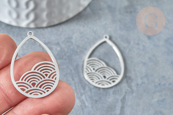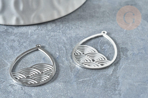 Un Pendentif en acier platine en forme de goutte de pluie, décoré de vagues en acier inoxydable