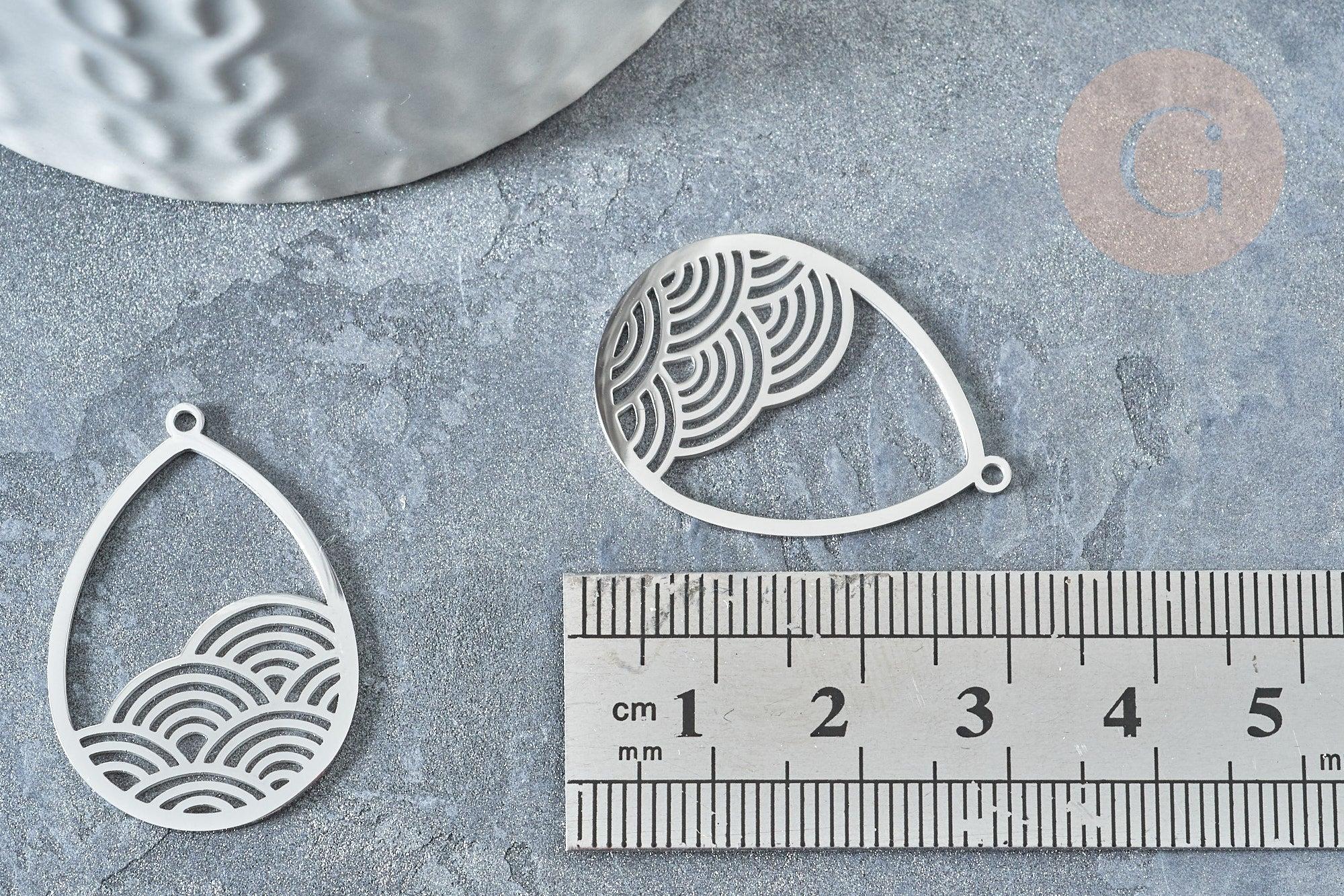 Pendentif acier argenté goutte de pluie 30mm, bijoux acier inoxydable sans nickel, x1 G7612