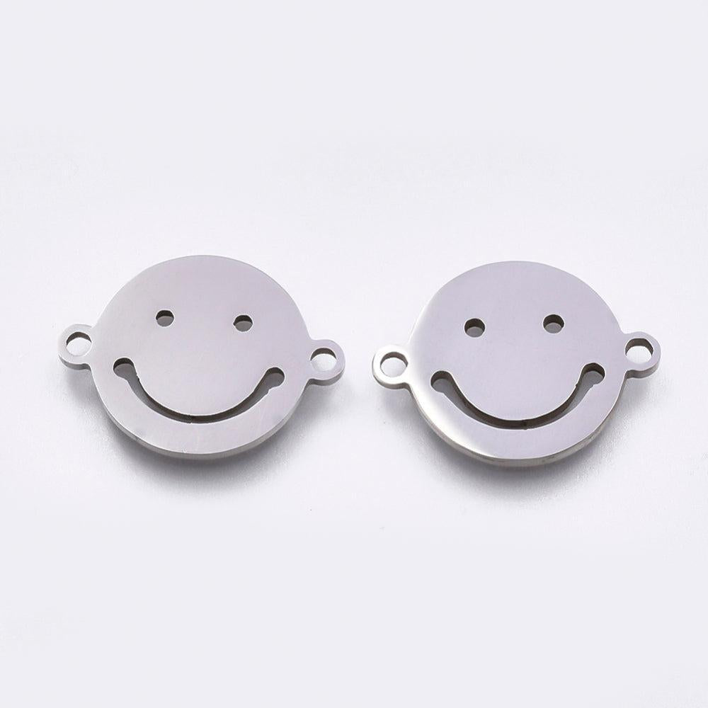Pendentif smiley acier 201 inoxydable doré ou platine 12.5mm, x1 (G5687)