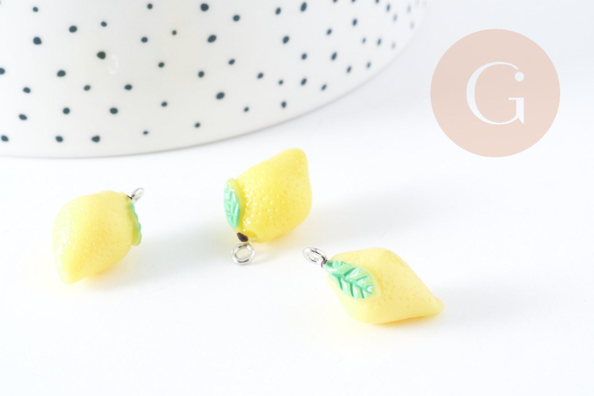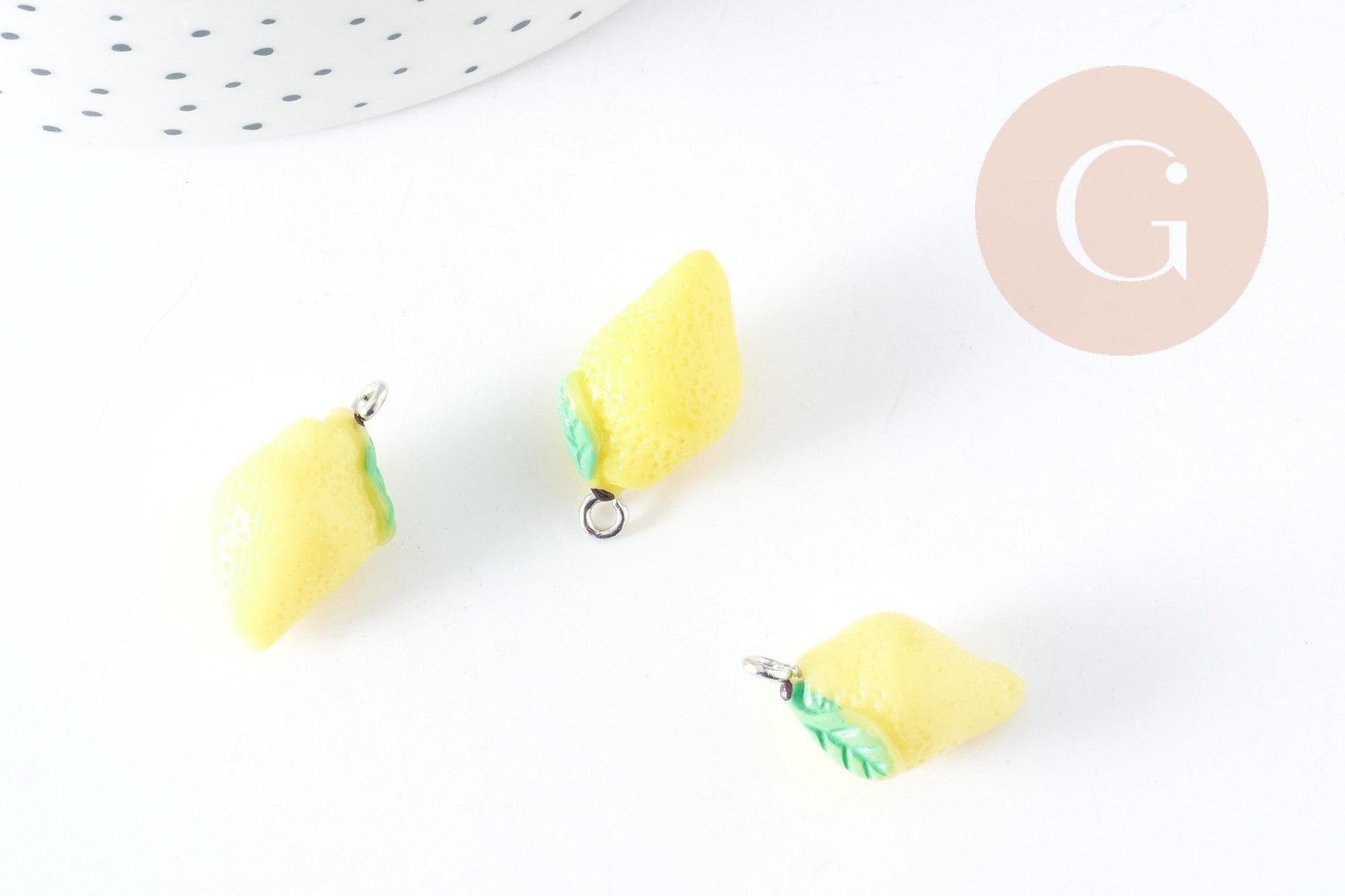Adoptez ce magnifique pendentif citron en résine jaune, avec une finition en fer platine, mesurant entre 20 et 24 mm. Ajoutez une touche de fraîcheur estivale à vos créations de bijoux avec ce pendentif fruit agrume.