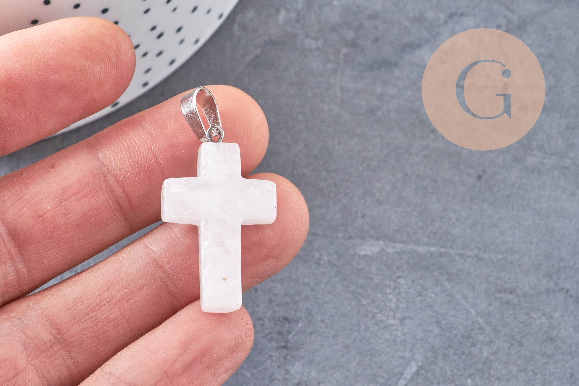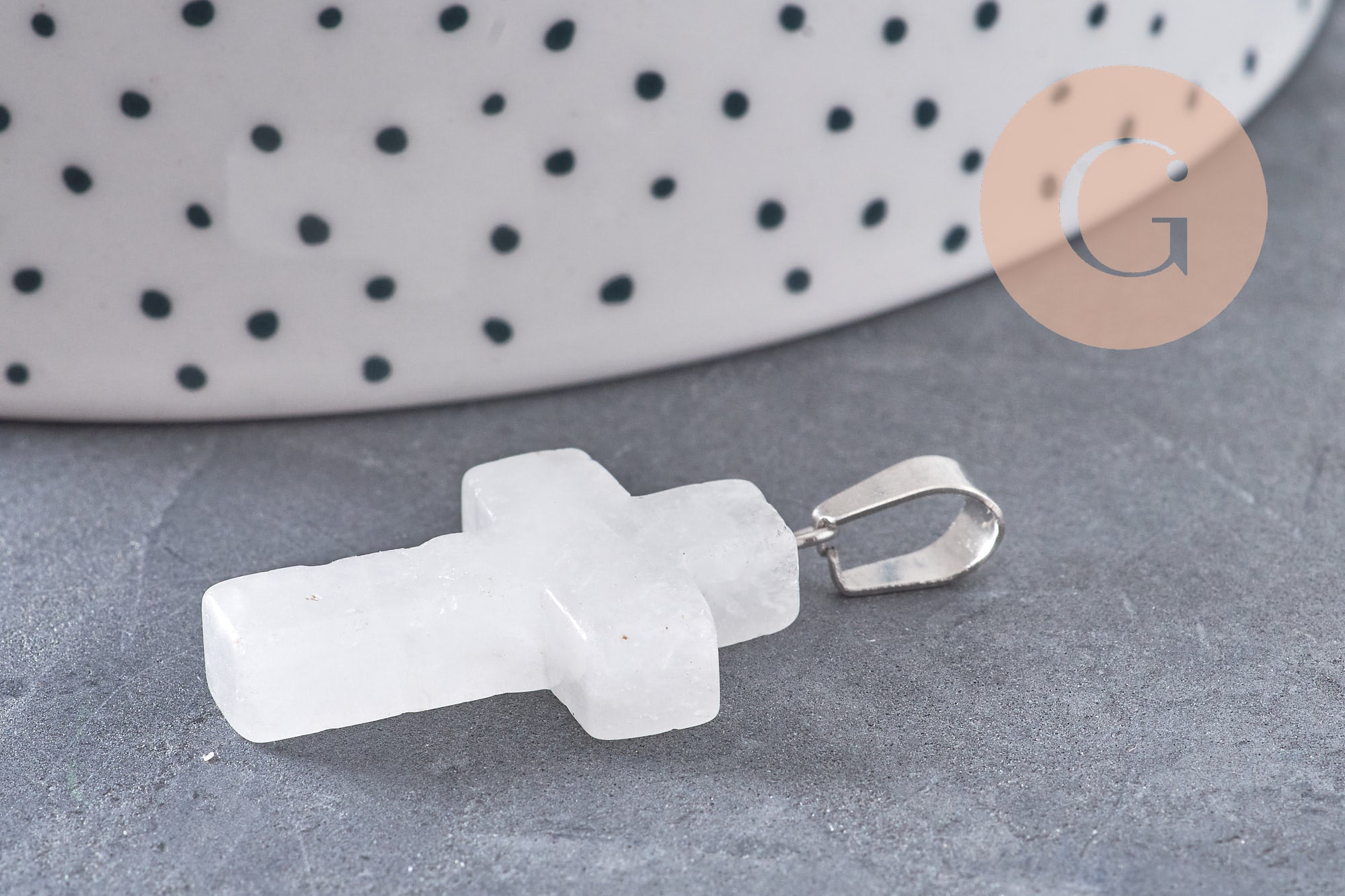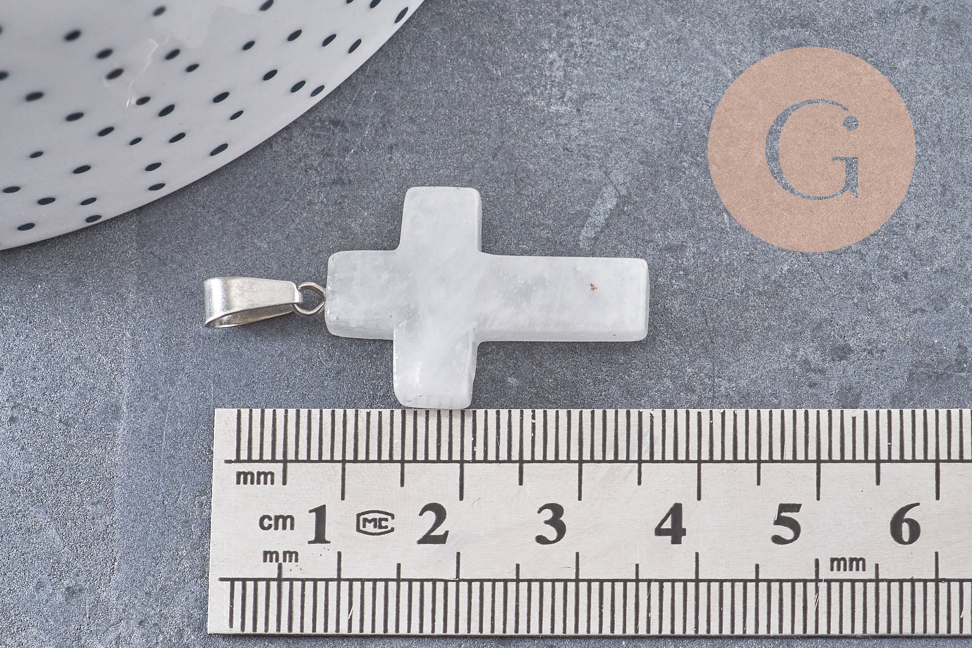 Pendentif croix cristal de roche acier inoxydable 29mm,pendentif pierre, support argent, création bijoux,quartz naturel, x1 (G5842)