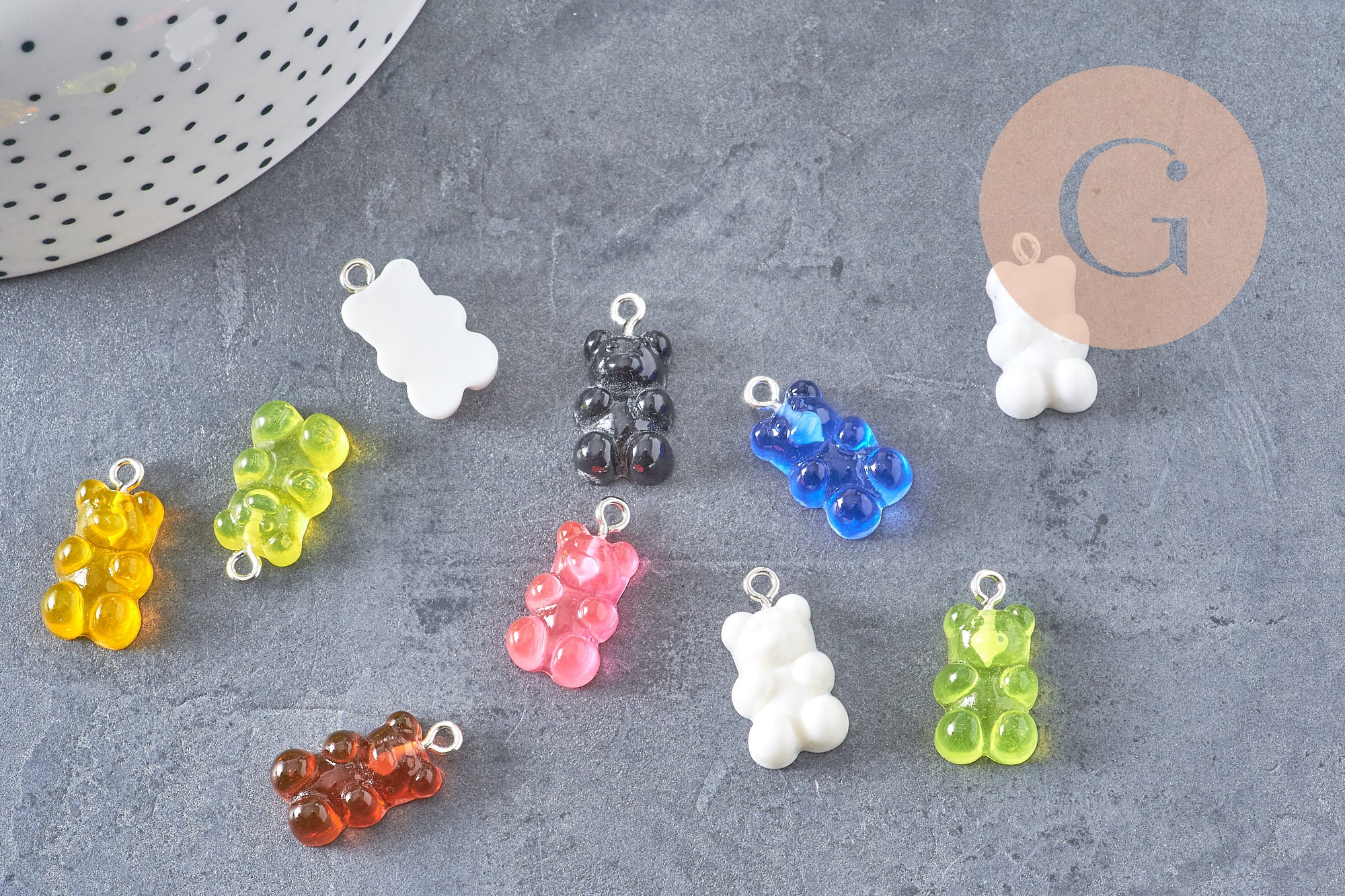 De mignons pendentifs oursons en résine colorée comme des bonbons, pour réaliser des bijoux sur le thème de l'enfance.