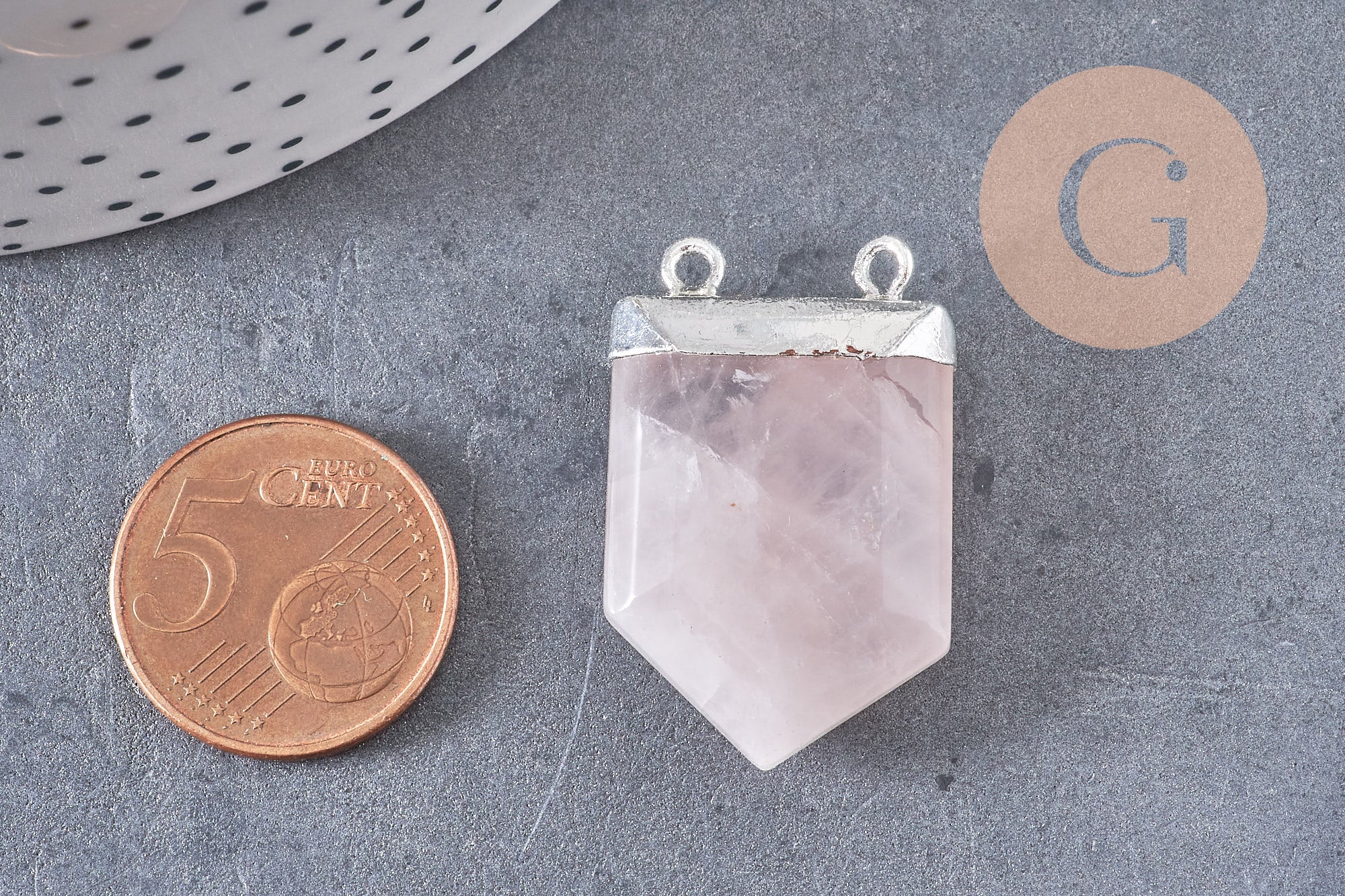 Craquez pour ce petit pendentif hexagonal en quartz rose avec son support argenté