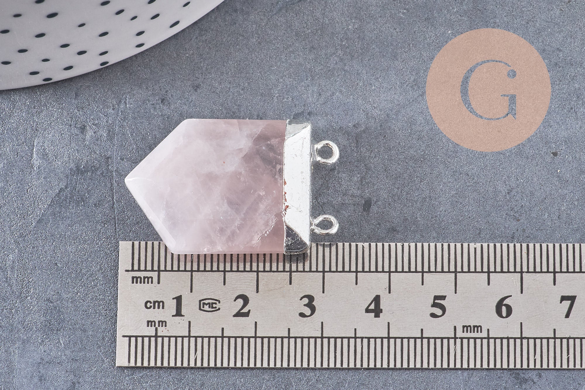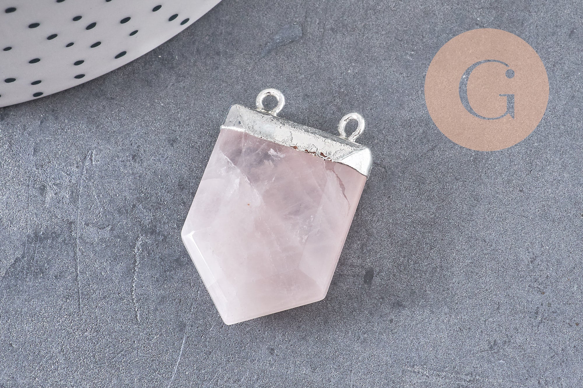 Pendentif quartz rose hexagone argenté,pendentif bijoux pierre,pendentif pierre,quartz rose naturel,pendentif quartz rose,28mm